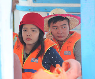 | Du khách mặc áo phao khi tham quan vịnh Nha Trang. |