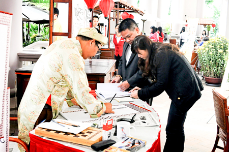 | Du khách xin chữ đầu năm tại khách sạn Sunrise Nha Trang |