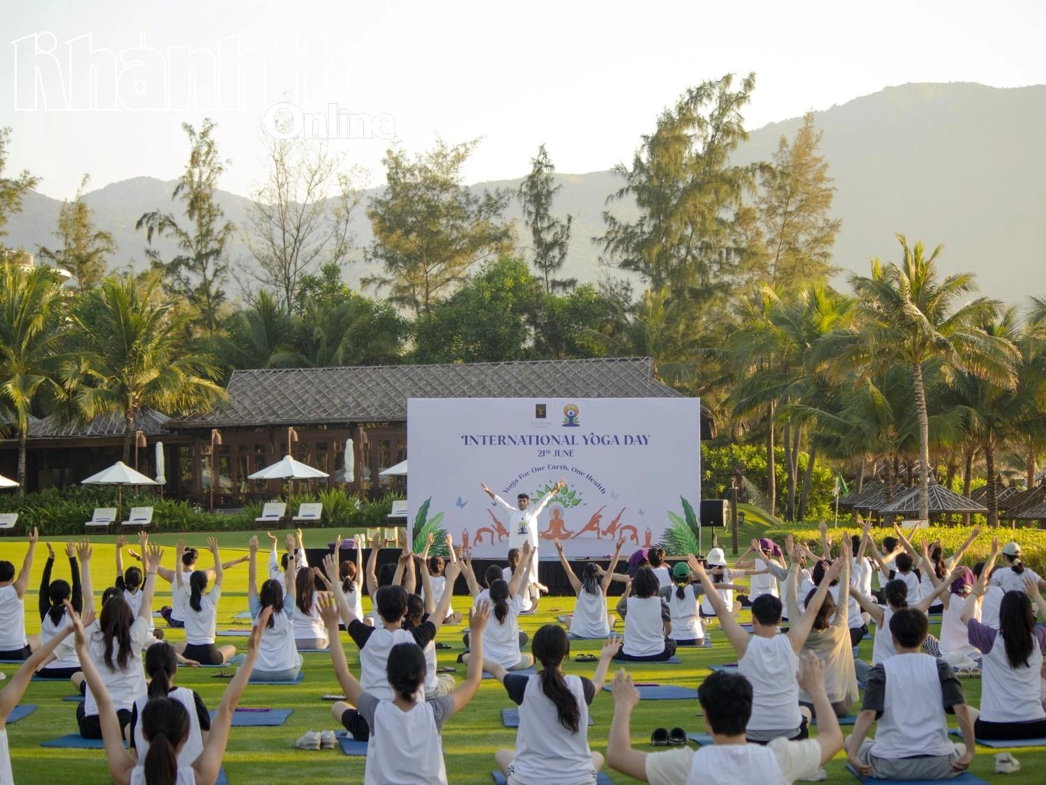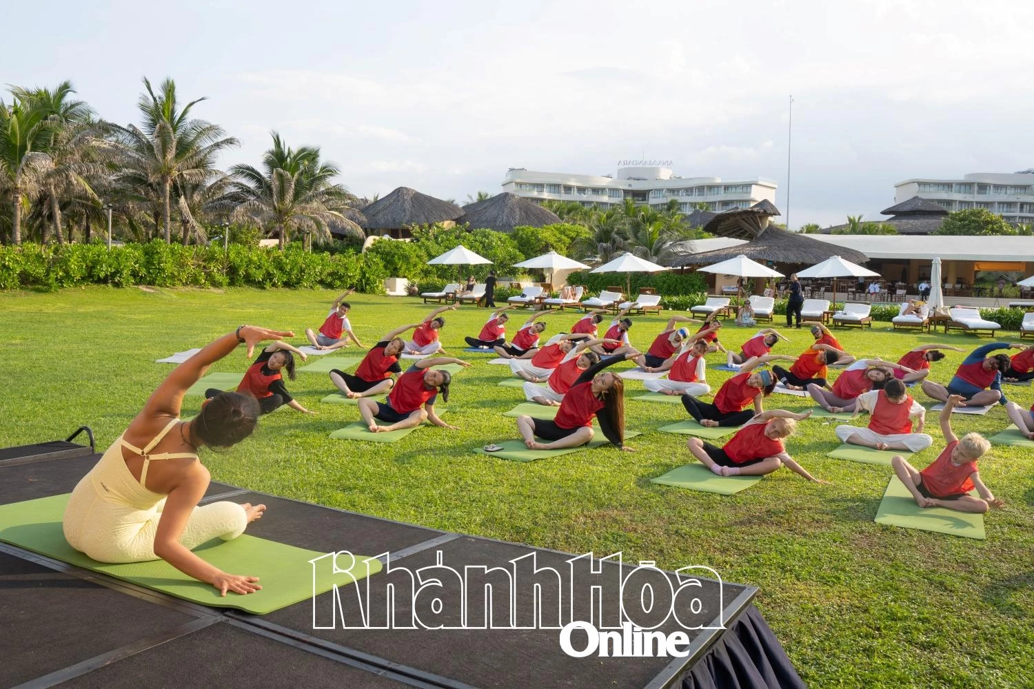 Ngày 21-6, hưởng ứng Ngày Quốc tế Yoga, nhiều khu nghỉ dưỡng ở khu Bãi Dài (xã Cam Hải Đông, huyện Cam Lâm) tổ chức các chương trình tập luyện yoga cho du khách.