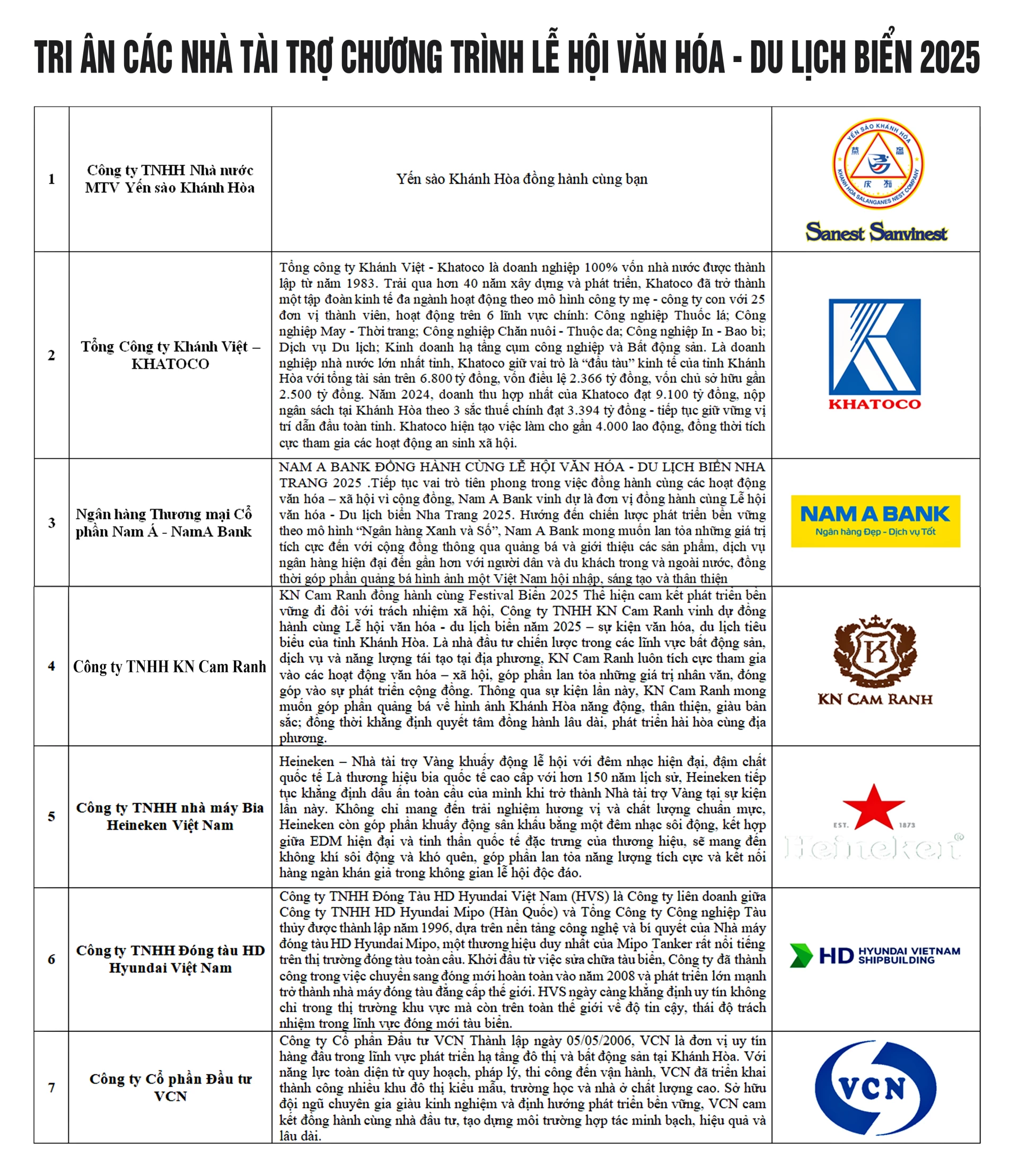 Tri ân các nhà tài trợ chương trình Lễ hội Văn hóa - Du lịch biển 2025