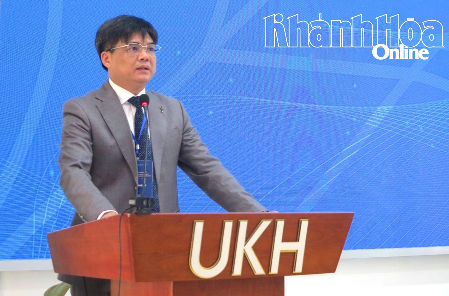 | Tiến sĩ Phan Phiến - Hiệu trưởng Trường Đại học Khánh Hòa phát biểu tại hội thảo. |
