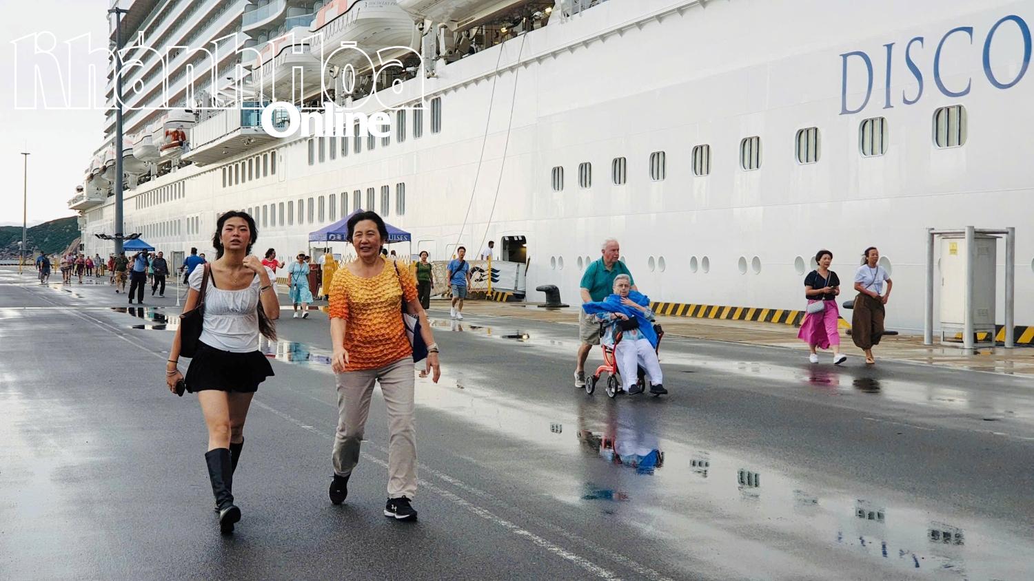 | Du khách tàu Discovery Princess xuống Cảng quốc tế Cam Ranh bắt đầu hành trình tham quan Khánh Hòa. |