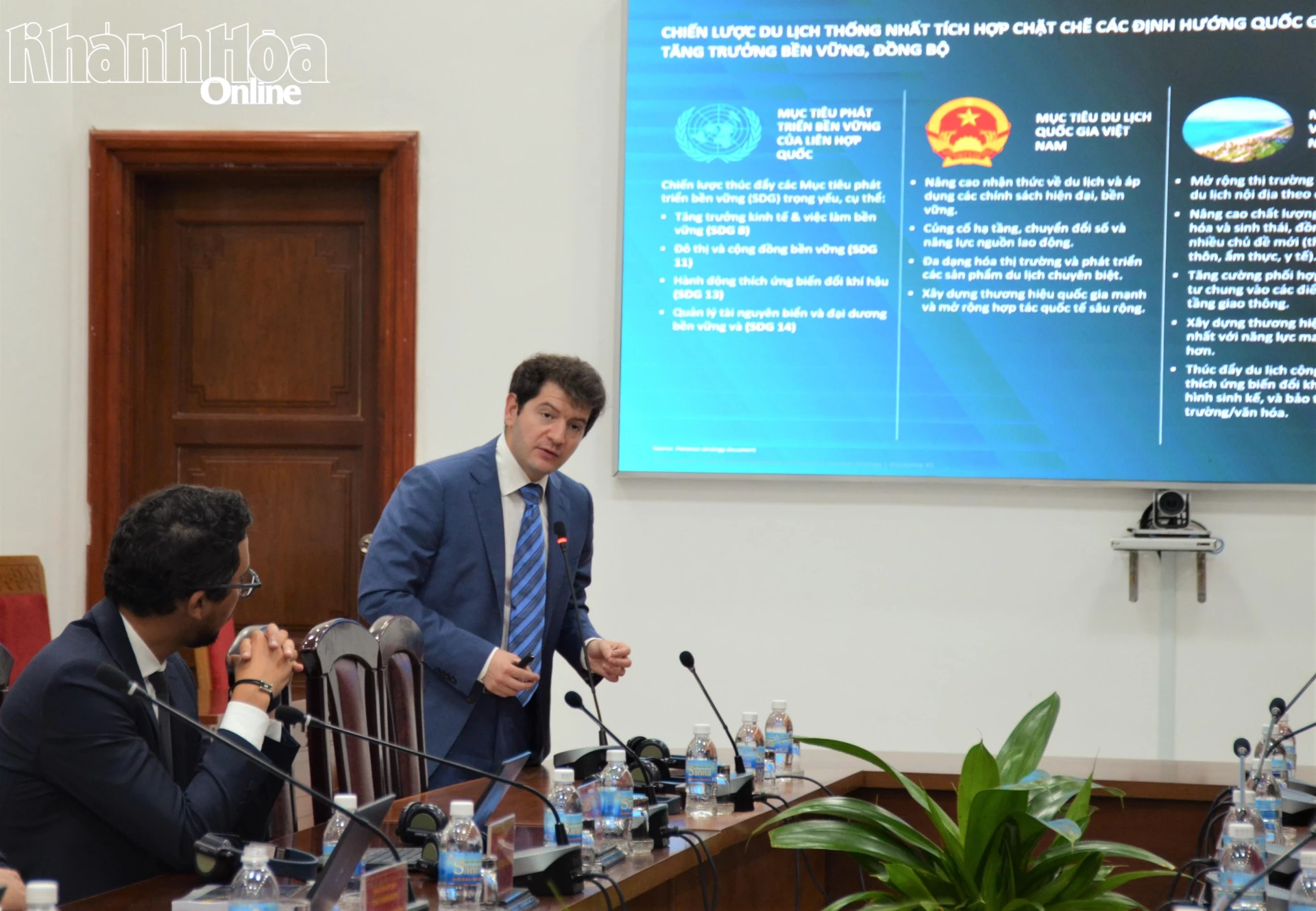 | Chuyên gia của công ty Simon - Kucher trình bày dự thảo Chiến lược phát triển du lịch tỉnh Khánh Hòa giai đoạn 2025 - 2030, định hướng đến năm 2045. |