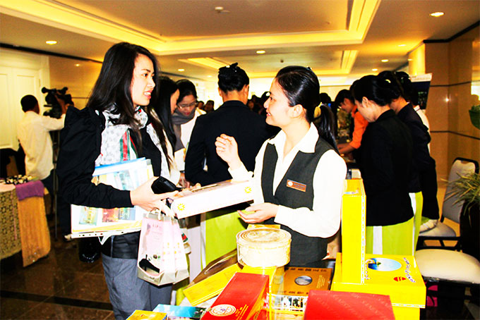 Du khách trải nghiệm các sản phẩm dịch vụ tại Tắm bùn Tháp Bà. |