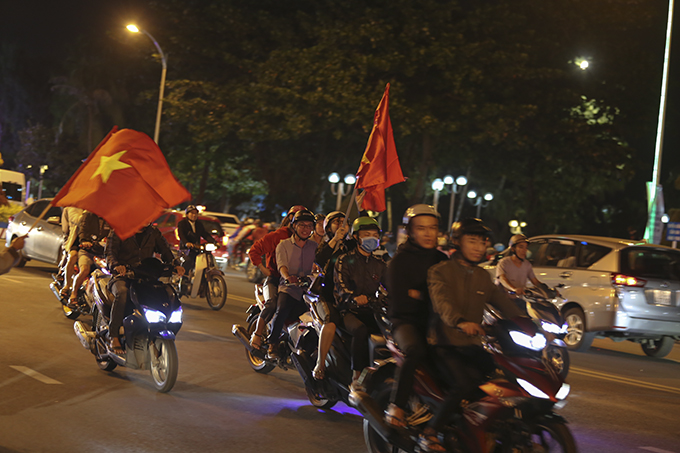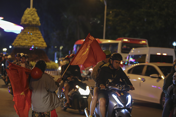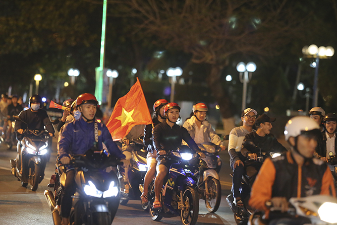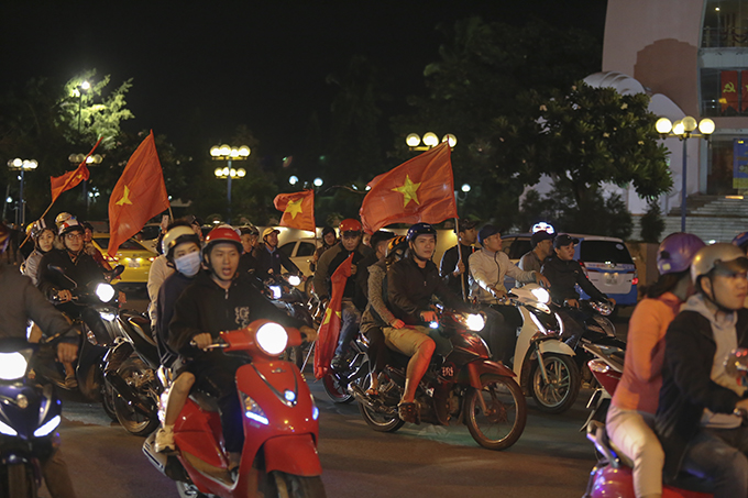 Many big streets in Nha Trang such as Tran Phu, Le Thanh Ton, Yersin, Pham Van Dong and the 2-4 Square were crowed with happy football fans.