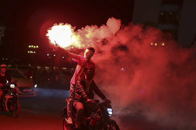 After Vietnam U-22 thrashed Cambodia U-22 4-0 in the SEA Games 30 men's football semi-final on December 7, thousands of people in Nha Trang City took to the streets to celebrate the victory.