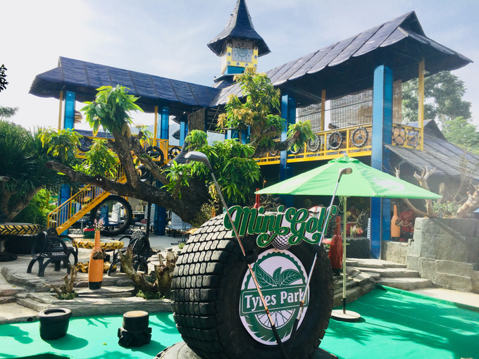 Tyres Park covers an area of around 3,000 square meters, displaying several objects made from recycled tyres, for example house, clock, table, chair, drum, cannon, rocket, and mock-ups of animals. A castle made from old tyres is being built. Apart from objects made from recycled tyres, Tyres Park also includes other unique works, such as tree house and foam house.