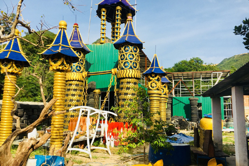 Artisan Nguyen Van Phung and his colleagues recently opened their park of objects made from recycled tyres, namely Tyres Park, at Phuoc Thuong Hamlet, Phuoc Dong Commune, Nha Trang.