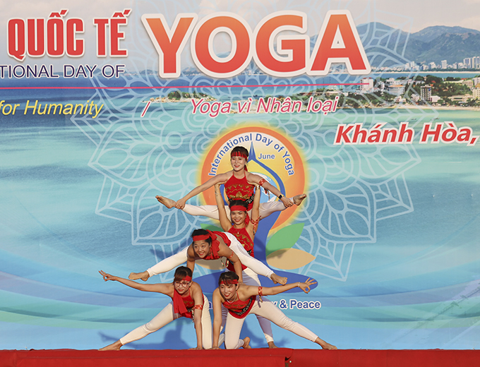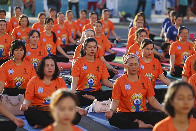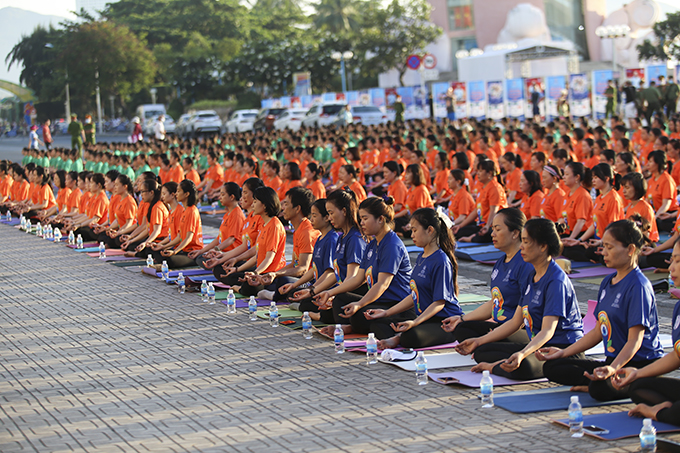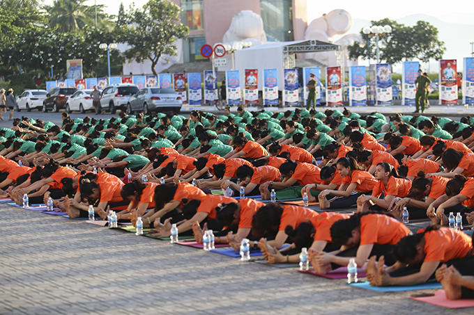 Over 1,200 yoga practitioners of yoga clubs in and outside Khanh Hoa joined the event. The session was instructed by Le Thi Hang, head of the Emulation and Commendation Committee of Khanh Hoa Provincial Yoga Federation and ten yoga teachers.