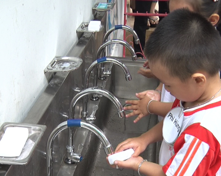 A contest on proper hand washing with soap was held on November 5 for children at Huong Duong Nursery School, Ninh Hoa Town.