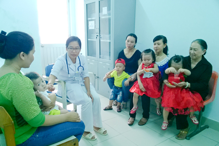 | Advisory session for babies under the project on early monitoring and intervention for babies at high-risk of disability at the Pediatrics Department, Khanh Hoa General Hospital. |