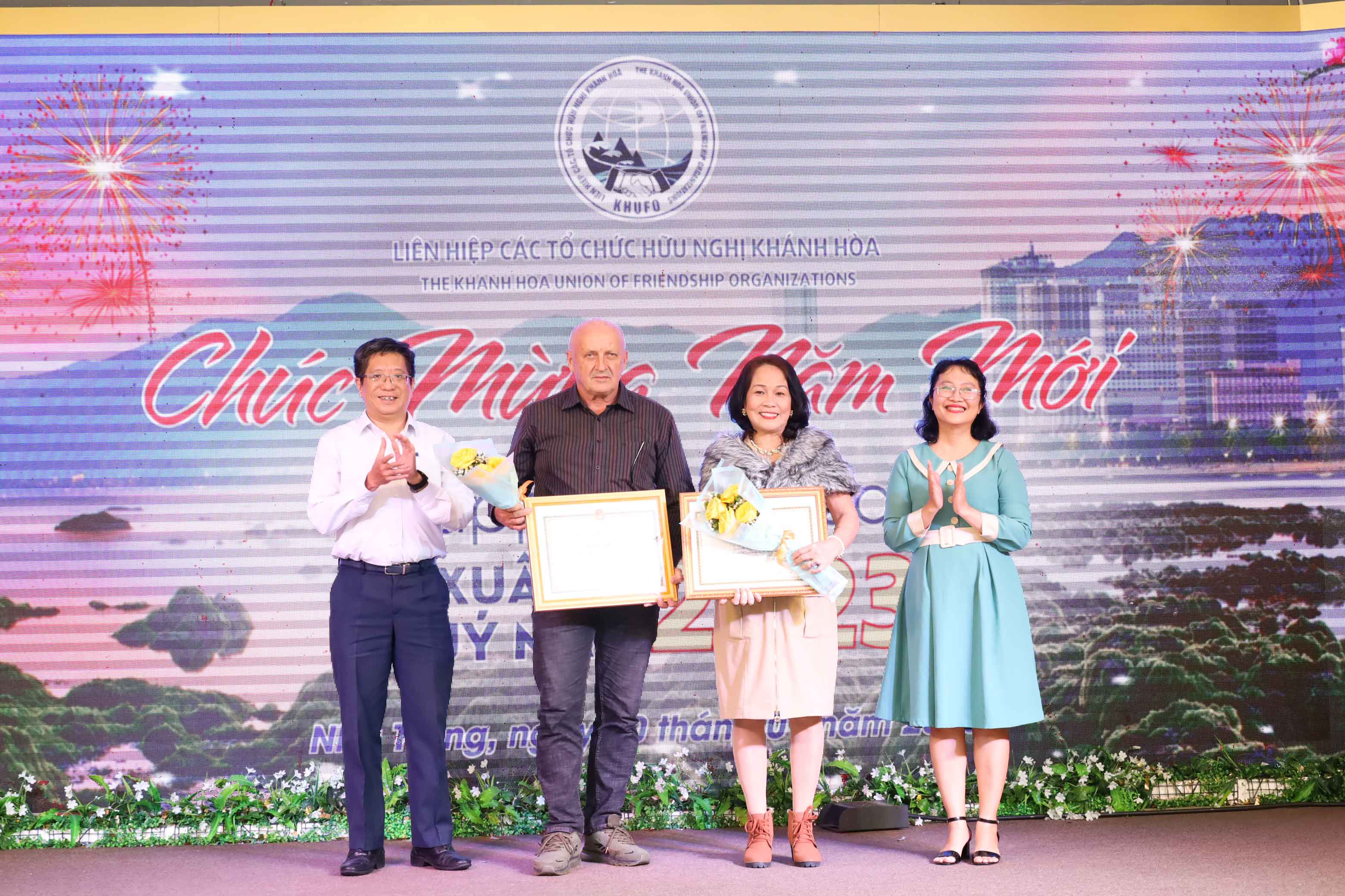 On this occasion, Khanh Hoa Union of Friendship Organizations wished foreign visitors and overseas Vietnamese good health, happiness and wealth in the New Year; and granted certificates of merit to 2 individuals and 3 groups with great contribution to people-to-people relations in Khanh Hoa.