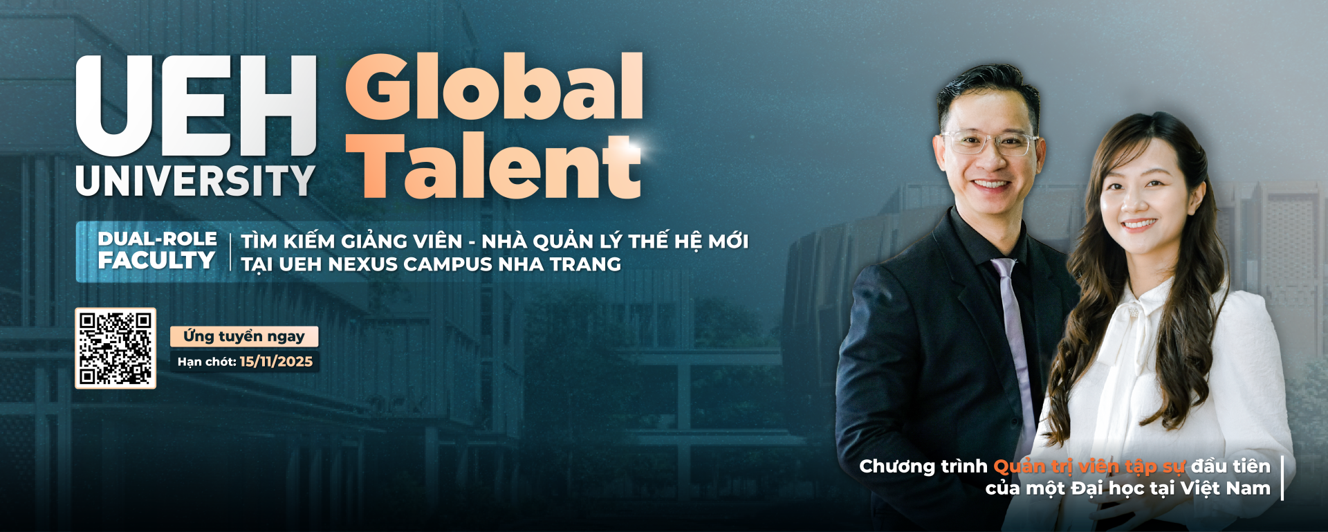 Tiếp nối thành công của đợt tuyển dụng đầu tiên, tháng 10/2025, UEH chính thức triển khai đợt tuyển dụng thứ 2 cho chương trình UEH Global Talent Program, tuyển chọn Quản trị viên tập sự (Trainee) cho các vị trí Giảng viên và Trợ giảng tại UEH Nexus Campus Nha Trang.