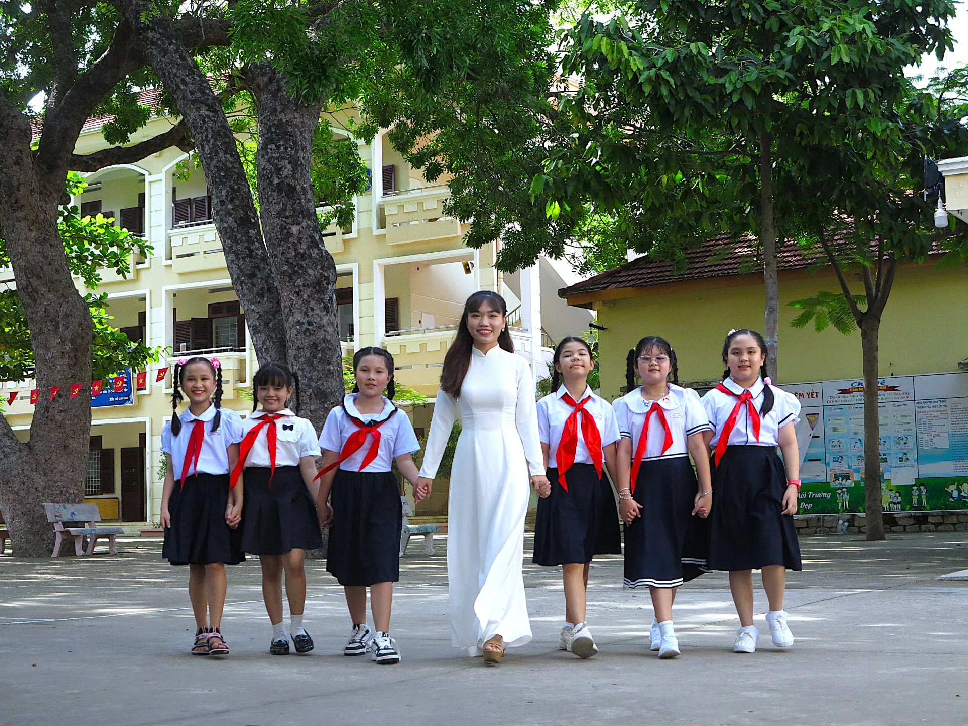 | Cô và trò Trường Tiểu học Lộc Thọ (phường Nha Trang). |