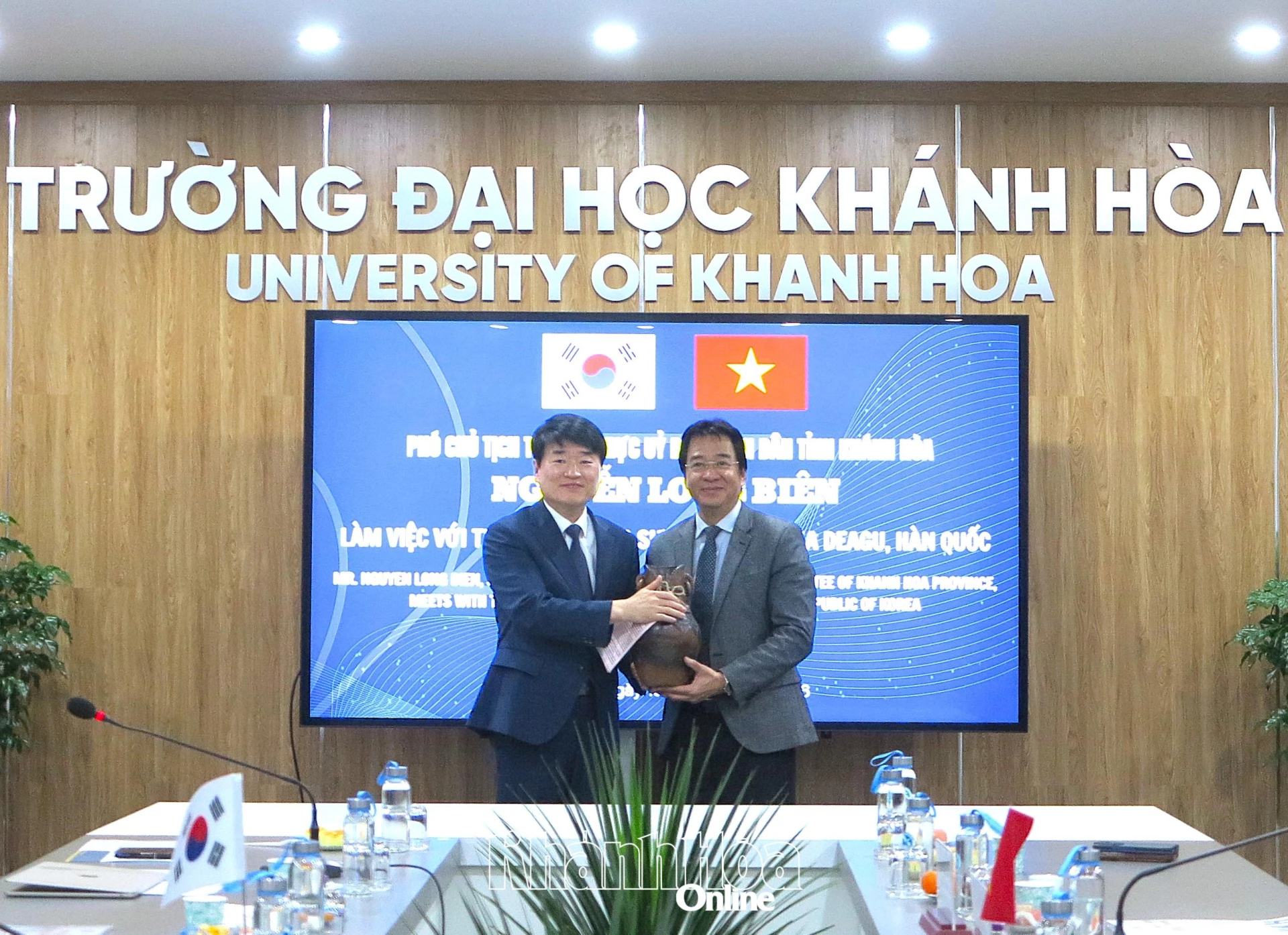 Sáng 15-1, tại Trường Đại học Khánh Hòa, đồng chí Nguyễn Long Biên - Ủy viên Ban Thường vụ Tỉnh ủy, Phó Chủ tịch Thường trực UBND tỉnh Khánh Hòa làm việc với Trường Đại học Sư phạm Quốc gia Daegu, Hàn Quốc. Tham dự buổi làm việc có PGS.TS Nguyễn Duy Bắc - Phó Giám đốc Học viện Chính trị Quốc gia Hồ Chí Minh. Về phía Trường Đại học Sư phạm Quốc gia Daegu có GS. Bea Sangsik - Hiệu trưởng nhà trường.