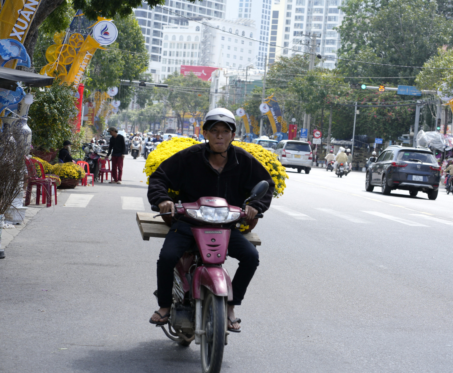 Có một nghề rất đặc biệt. Mỗi năm chỉ làm có đôi ba ngày trước Tết! Đó là những người chở hoa tết từ chợ hoa về nhà cho người mua. Họ gần giống người lái xe ôm nhưng rất đặc biệt không chở người mà chỉ chở chậu hoa, cây cảnh với giá như chở người. Anh Trần Quang ở đường Phan Đình Giót, phường Phương Sài, TP. Nha Trang kể, nhà nghèo làm nghề xe ôm ở các bến xe đậu nhưng khi xe công nghệ ra rất khó kiếm tiền; tới Tết, anh bám với chợ hoa để chở. Nghề chở hoa đơn giản chỉ có tấm ván với mấy sợi dây chằng là xong. Từng nhóm anh em tụ lại, nhường nhau xếp lượt chở, ai hên chở xa kiếm nhiều, ai chở gần hơn thì được chút đỉnh. Cứ thế bám vào chợ hoa từ 23 tháng Chạp cho tới Giao thừa mới nghỉ. Chợ nào hết thì chạy sang chợ còn hoa. Họ mang đầy cảm xúc giữa người bán hoa và người mua, đều mong giao dịch thành công để mình có việc làm.