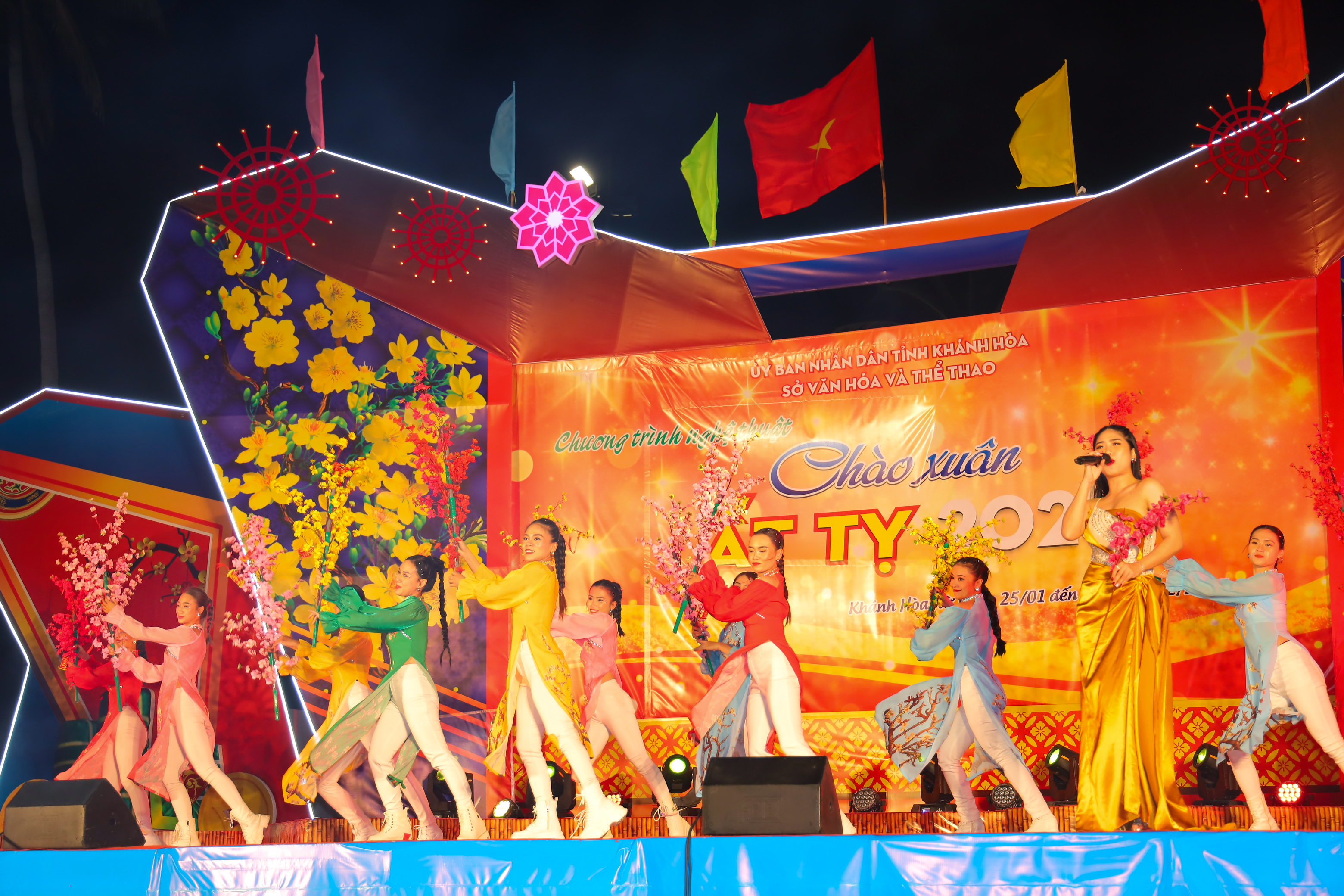 Tối 28-1 (đêm Giao thừa Tết Nguyên đán Ất Tỵ 2025), tại sân khấu ở Quảng trường 2 tháng 4 (TP. Nha Trang), Đoàn ca múa nhạc Hải Đăng đã thực hiện chương trình biểu diễn nghệ thuật “Chào xuân Ất Tỵ 2025”. Hàng nghìn khán giả là người dân và du khách đã đến theo dõi chương trình.