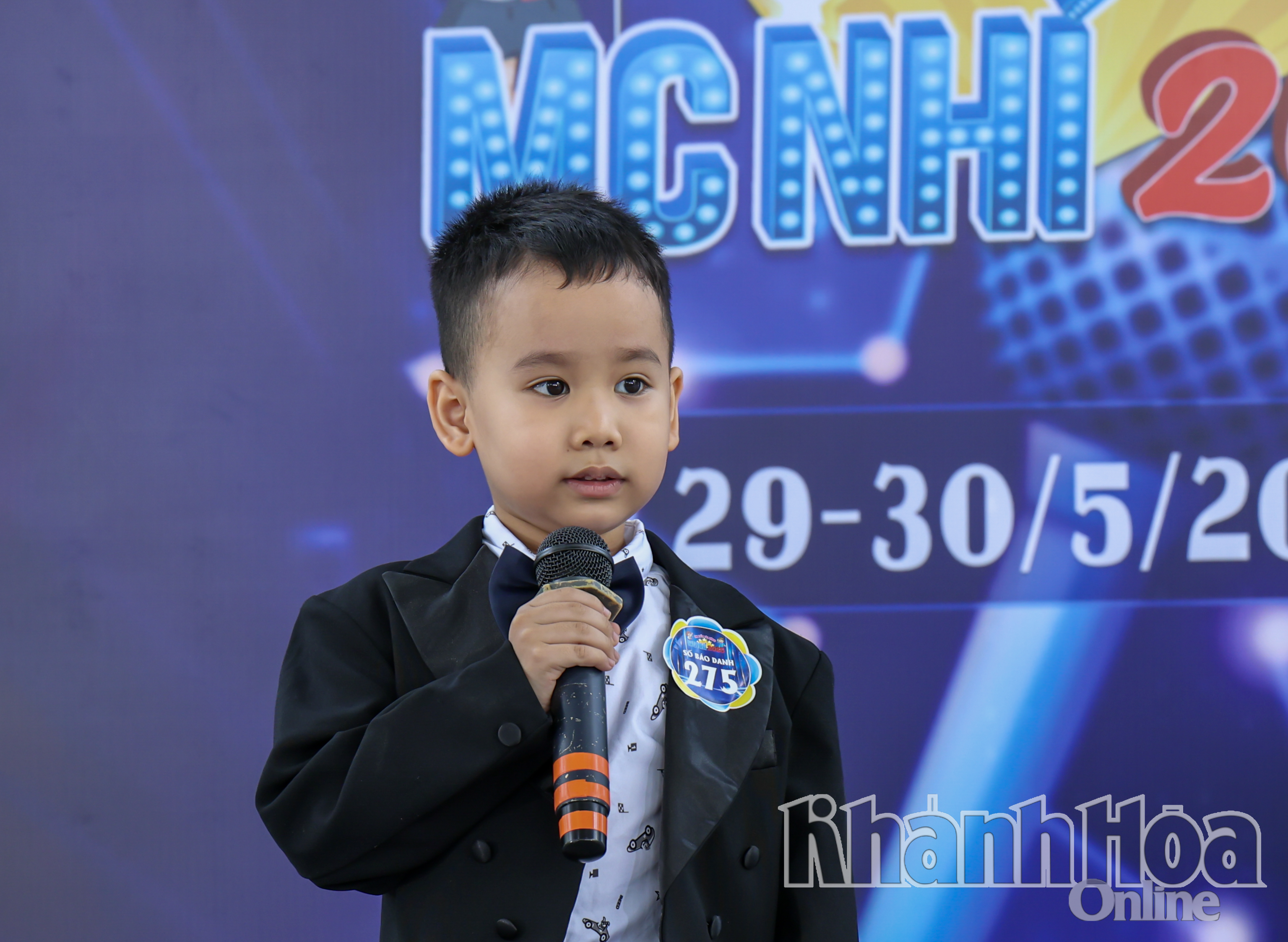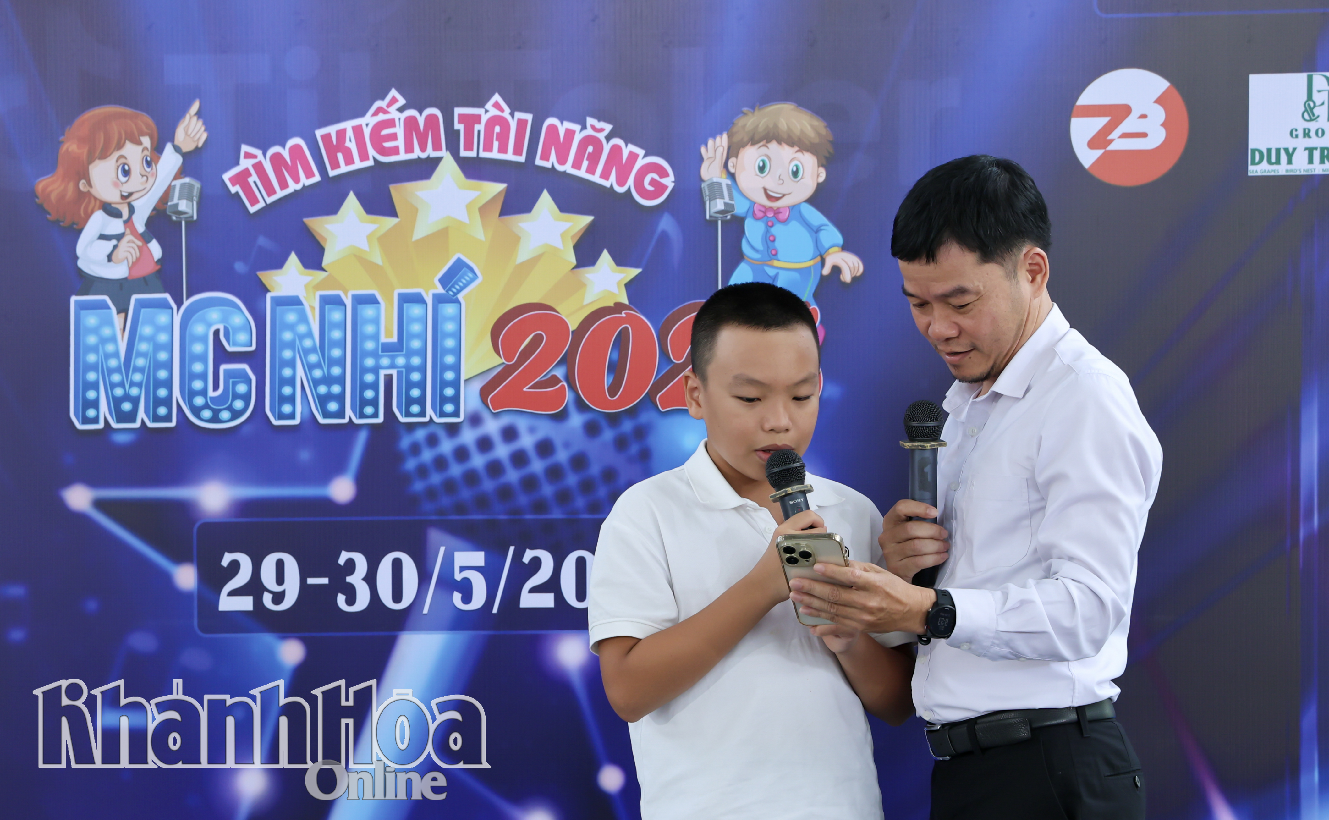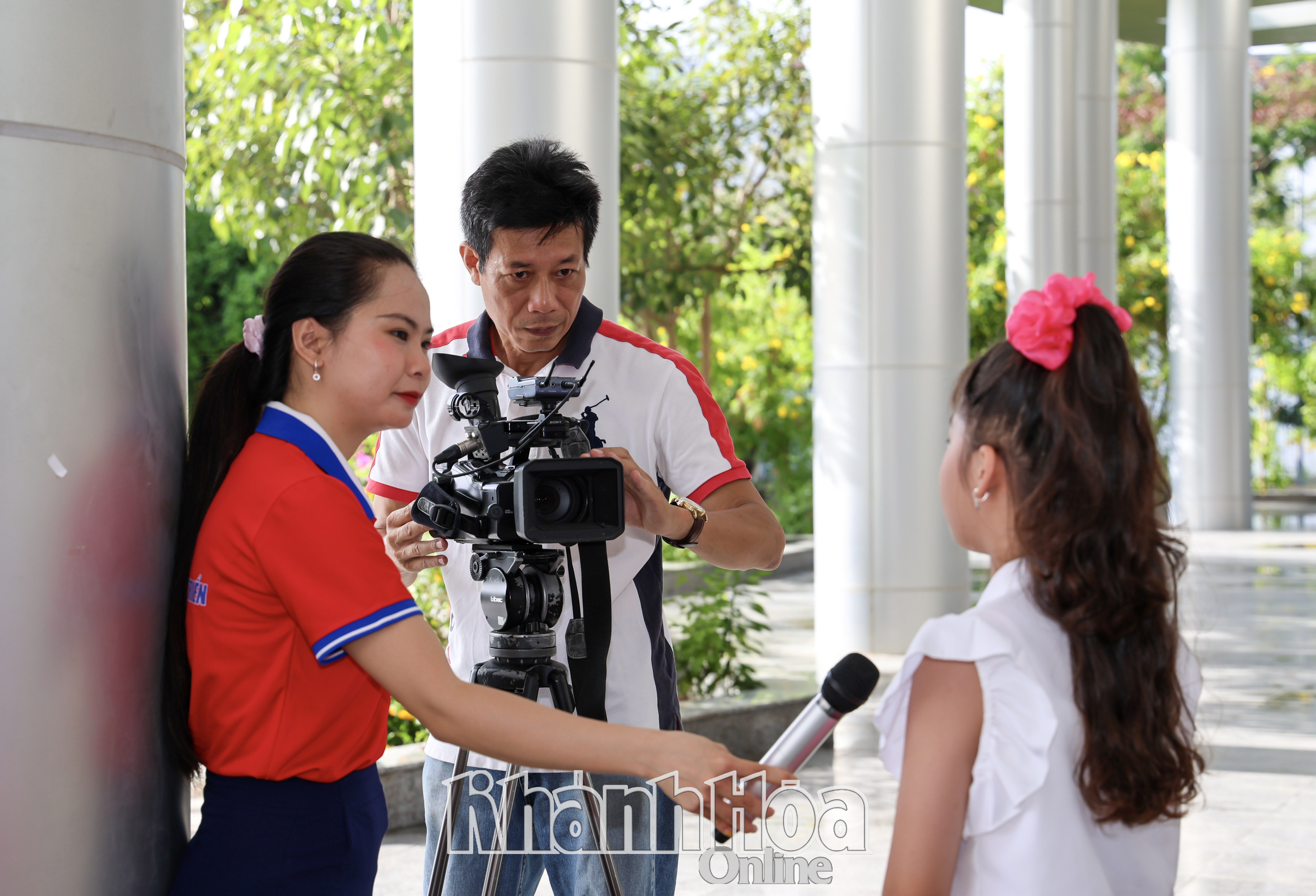 | Báo Khánh Hòa phỏng vấn thí sinh nhí tham gia cuộc thi. |