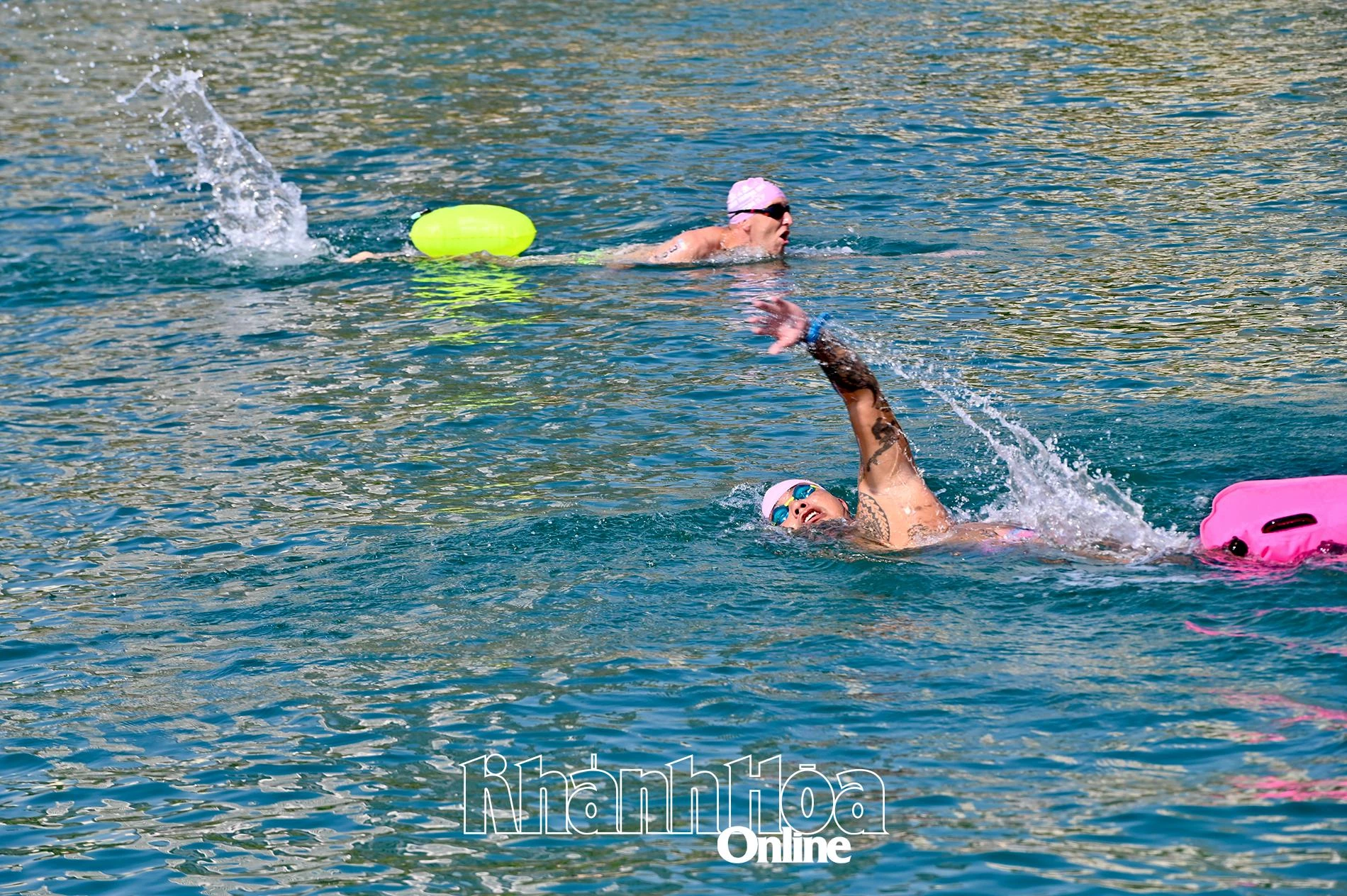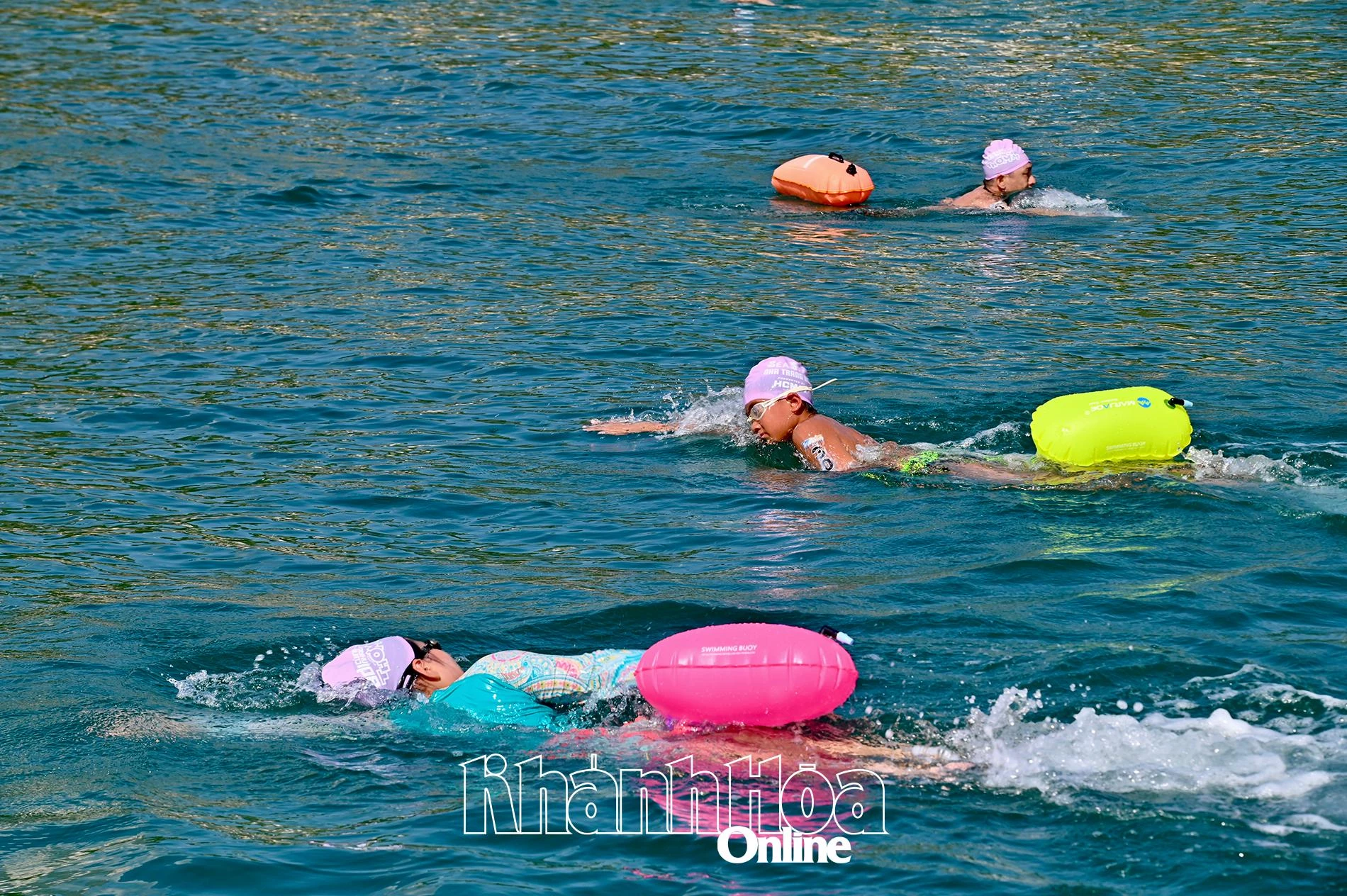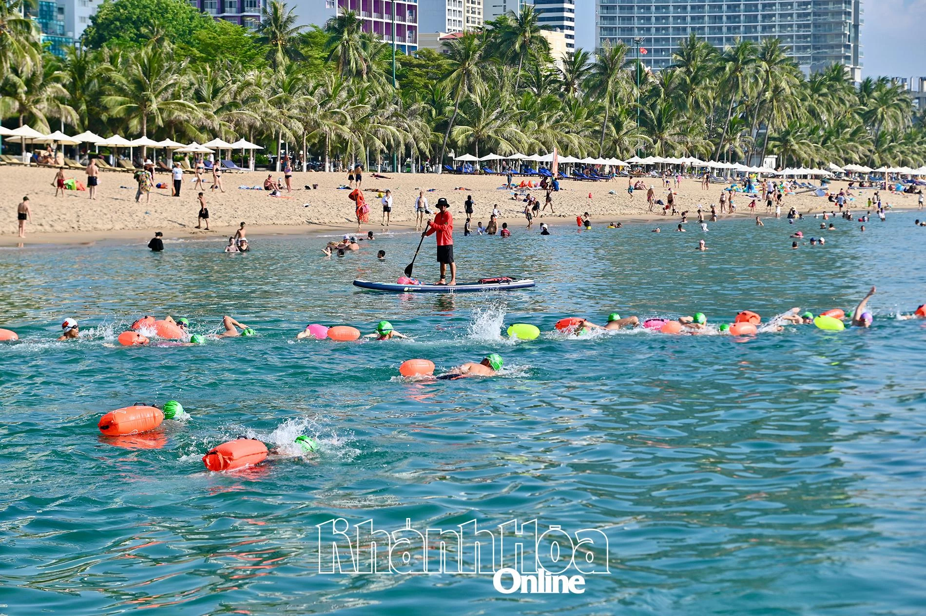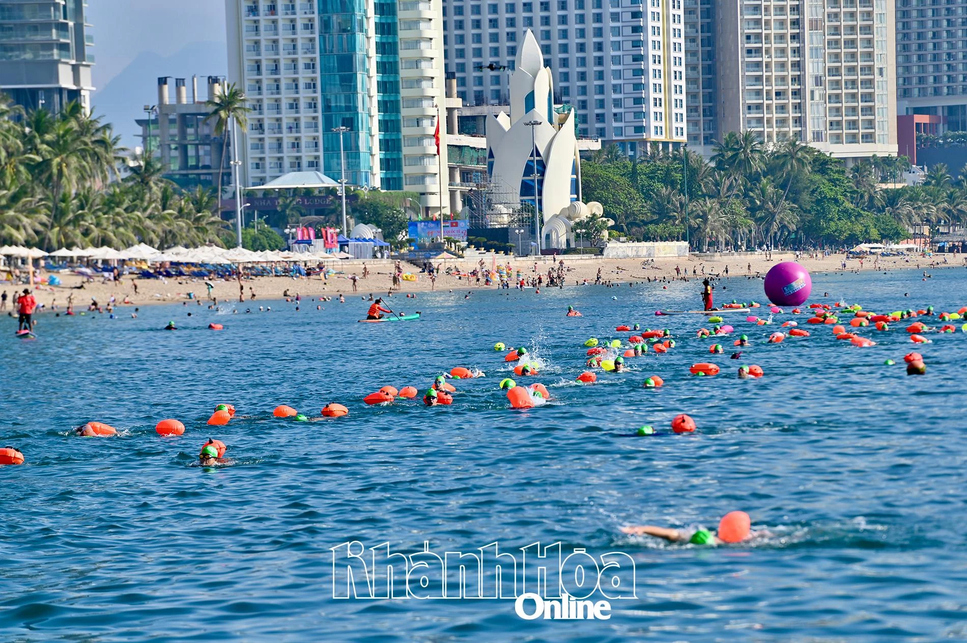 | Biển Nha Trang trong sớm mai xanh ngắt, đẹp, thích hợp cho các cuộc thi bơi biển. |
