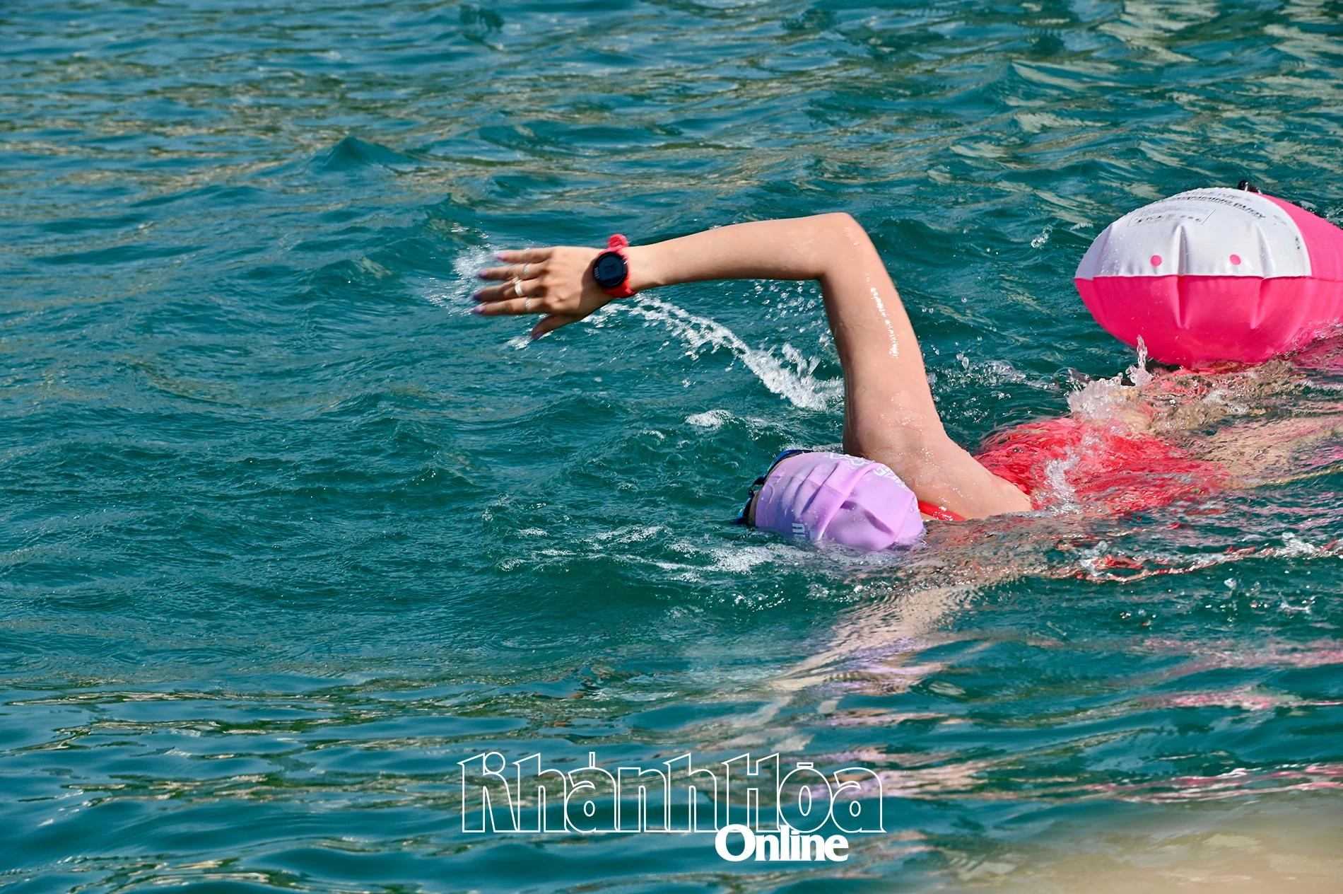 | Biển Nha Trang trong sớm mai xanh ngắt, đẹp, thích hợp cho các cuộc thi bơi biển. |