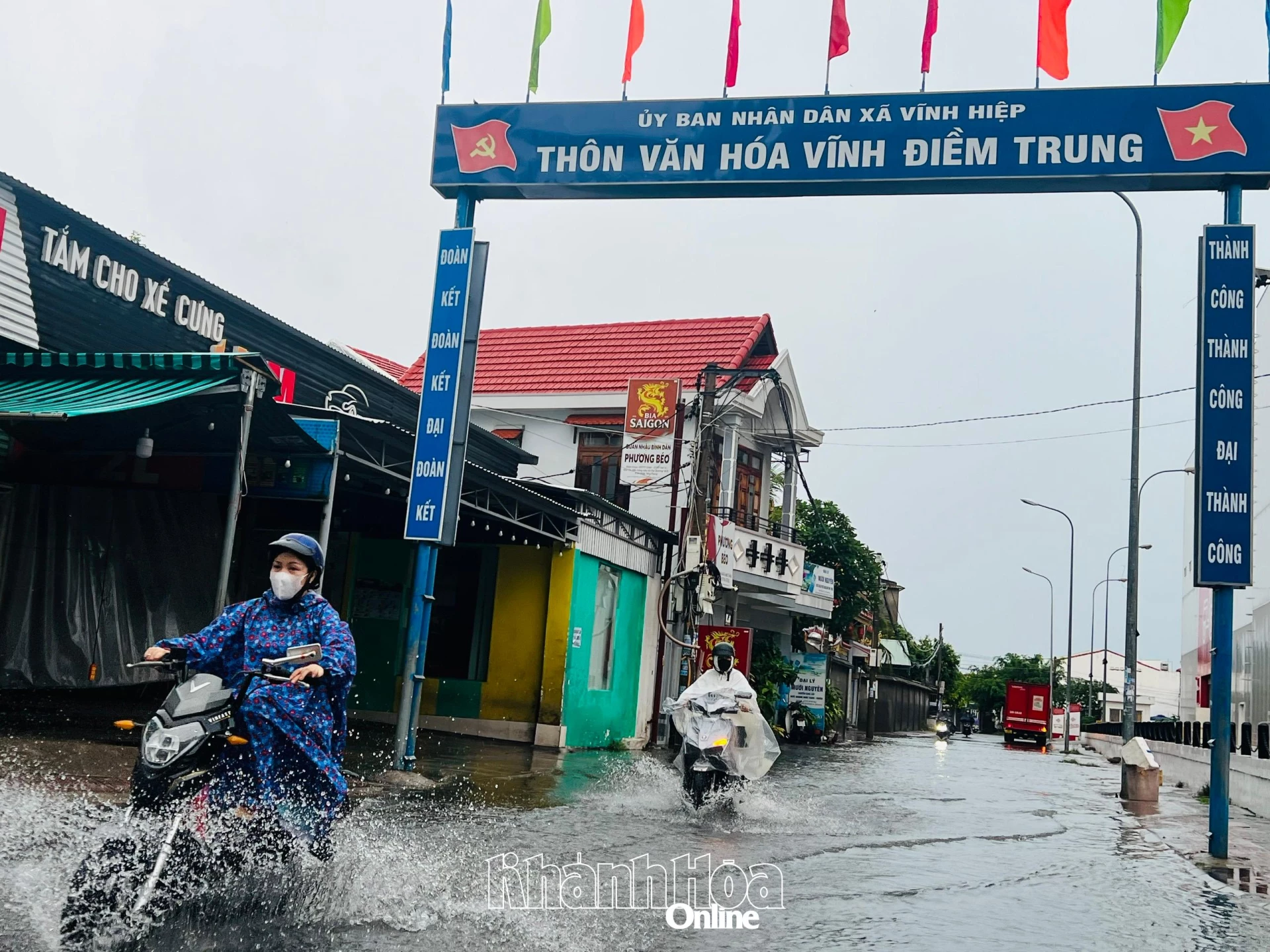 | Đường Lương Định Của (phường Tây Nha Trang) bị ngập cục bộ, gây khó khăn cho việc đi lại của người dân. |
