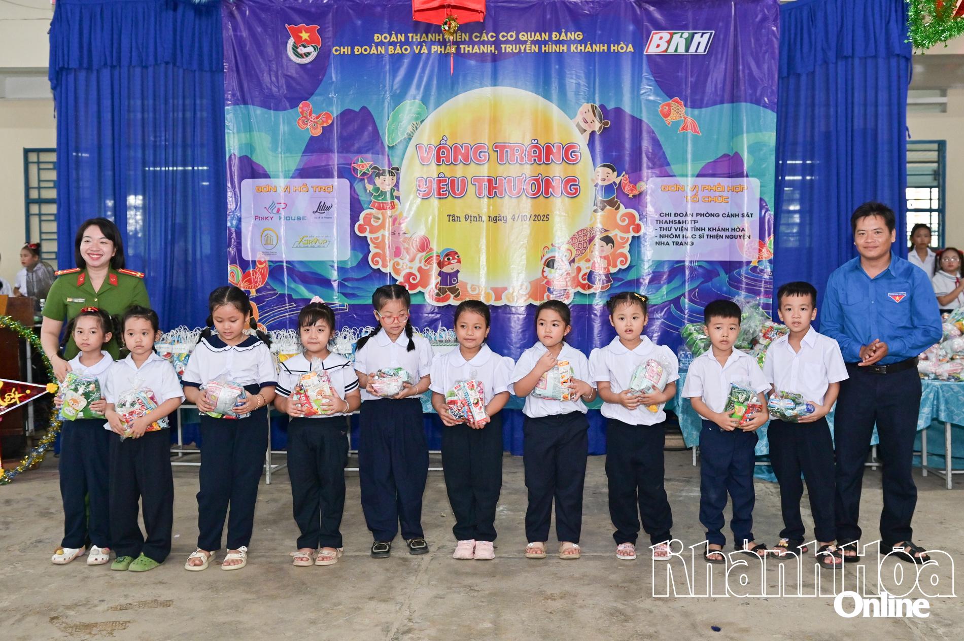 Chiều 4-10, tại Trường Tiểu học Ninh Bình (xã Tân Định), Chi đoàn Báo và Phát thanh, Truyền hình Khánh Hòa phối hợp với Chi đoàn Phòng Cảnh sát Thi hành án dân sự và Hỗ trợ tư pháp Công an tỉnh, Thư viện tỉnh, Nhóm bác sĩ thiện nguyện Nha Trang tổ chức chương trình Trung thu "Vầng trăng yêu thương".