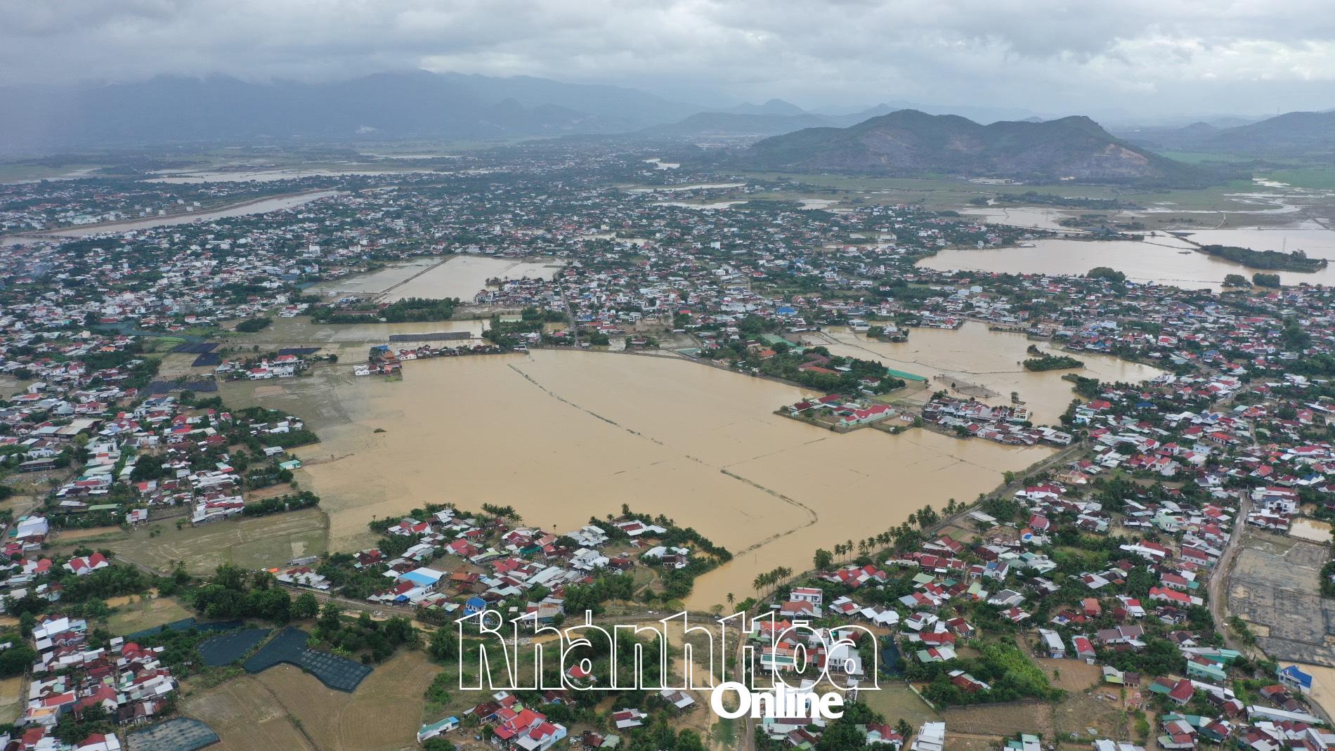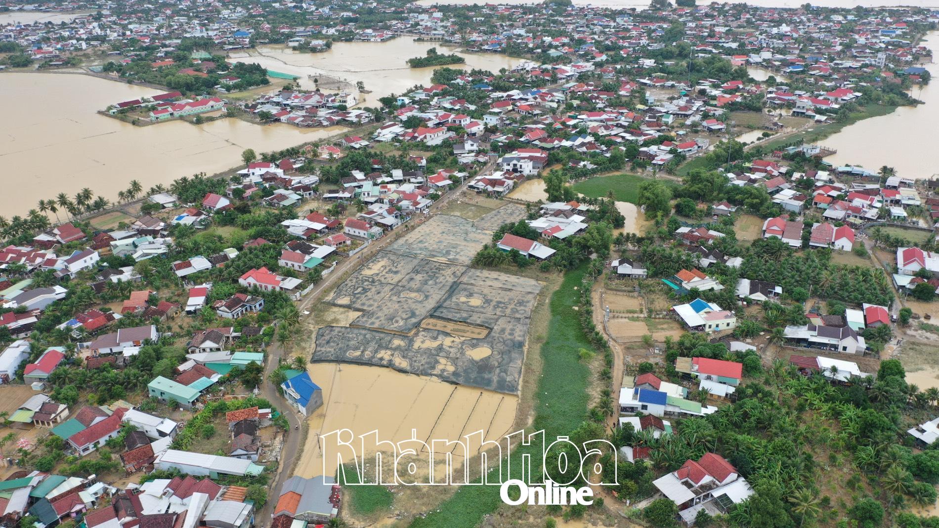 | Toàn cảnh tâm lũ xã Diên Điền chiều 23-11. |