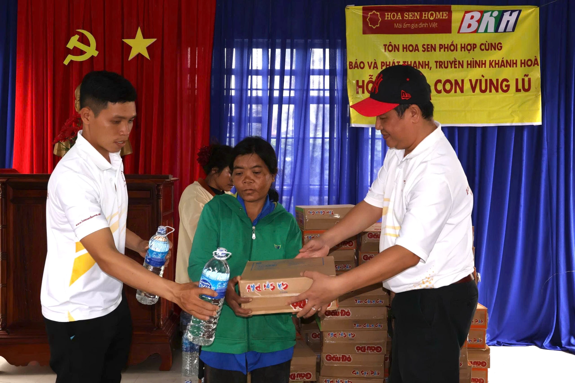 Trước tình hình mưa lũ diễn biến phức tạp gây hậu quả đặc biệt nghiêm trọng tại các địa phương trên địa bàn tỉnh Khánh Hòa, ngay từ đêm 21-11, Tập đoàn Hoa Sen đã phối hợp với Báo và Phát thanh, Truyền hình Khánh Hòa khẩn trương triển khai cứu trợ nhu yếu phẩm cho người dân đang trong vùng ngập lụt.