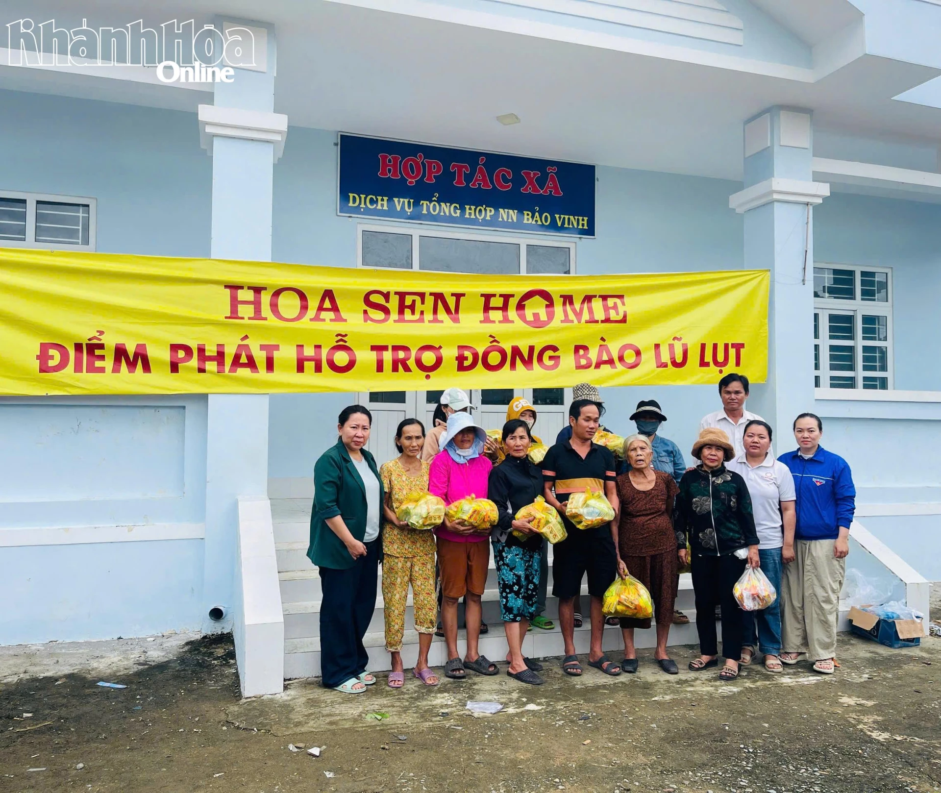 Tại Khánh Hòa, Tập đoàn Hoa Sen đã phối hợp với Báo và Phát thanh, Truyền hình Khánh Hòa tặng hàng ngàn thùng mì tôm, cháo gói; hàng ngàn thùng nước, lương khô, bánh mì cho người dân tại các xã, phường: Mỹ Sơn, Ninh Sơn, Bác Ái, Phước Dinh, Phước Hậu, Đô Vinh, Suối Hiệp, Diên Lạc, Diên Điền. Ngoài ra, Tập đoàn cũng tặng nhu yếu phẩm cho người dân các xã, phường: Hòa Thắng, Ninh Hòa, Tân Định. Tổng kinh phí đợt cứu trợ hàng hóa gần 700 triệu đồng. Dự kiến, hoạt động cứu trợ nhu yếu phẩm và thuốc men được Tập đoàn Hoa Sen tiếp tục thực hiện tại các địa phương khác trên địa bàn tỉnh Khánh Hòa trong những ngày tới.