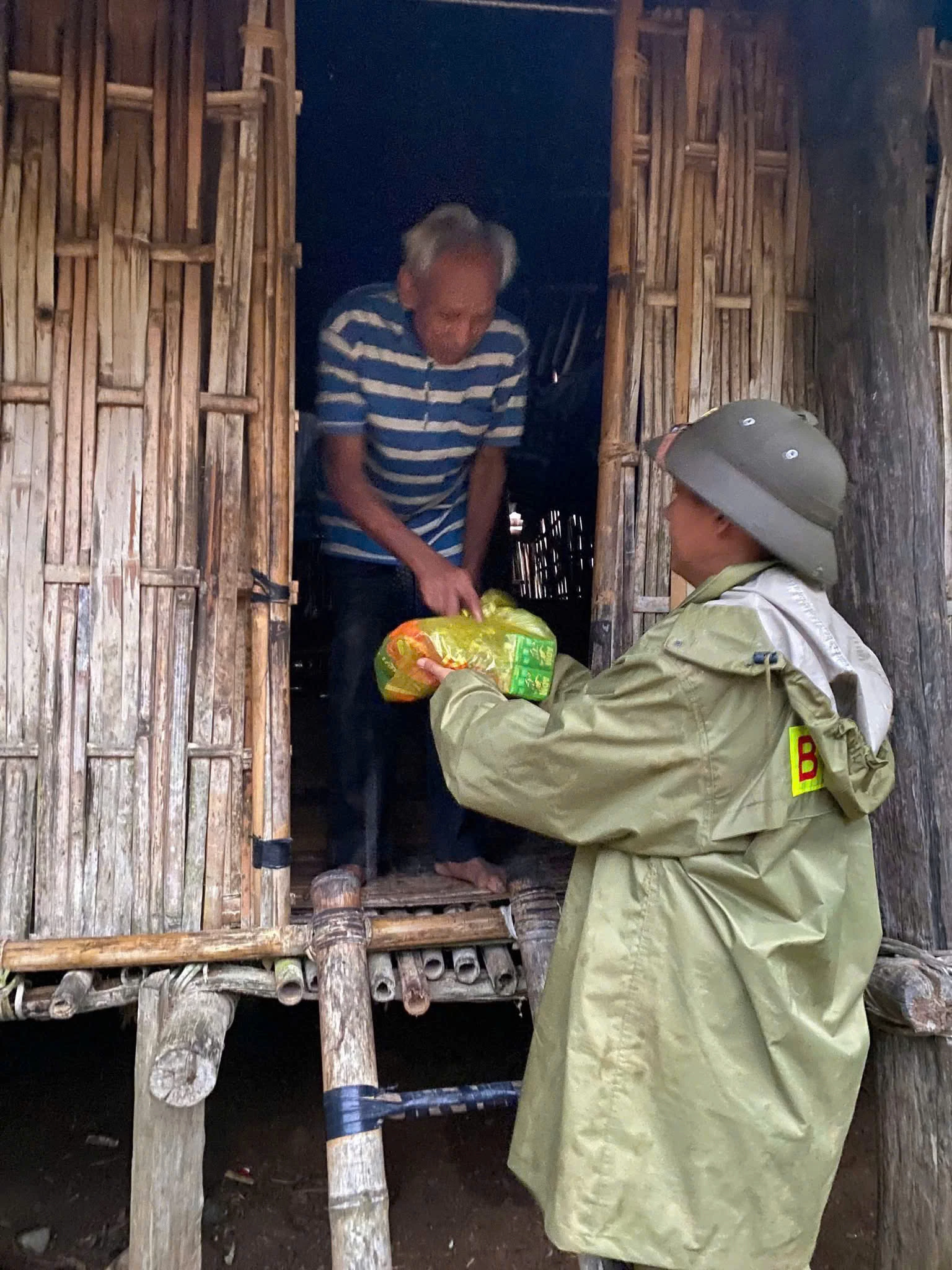 | Tặng nhu yếu phẩm cho người dân xã Tây Khánh Sơn. |