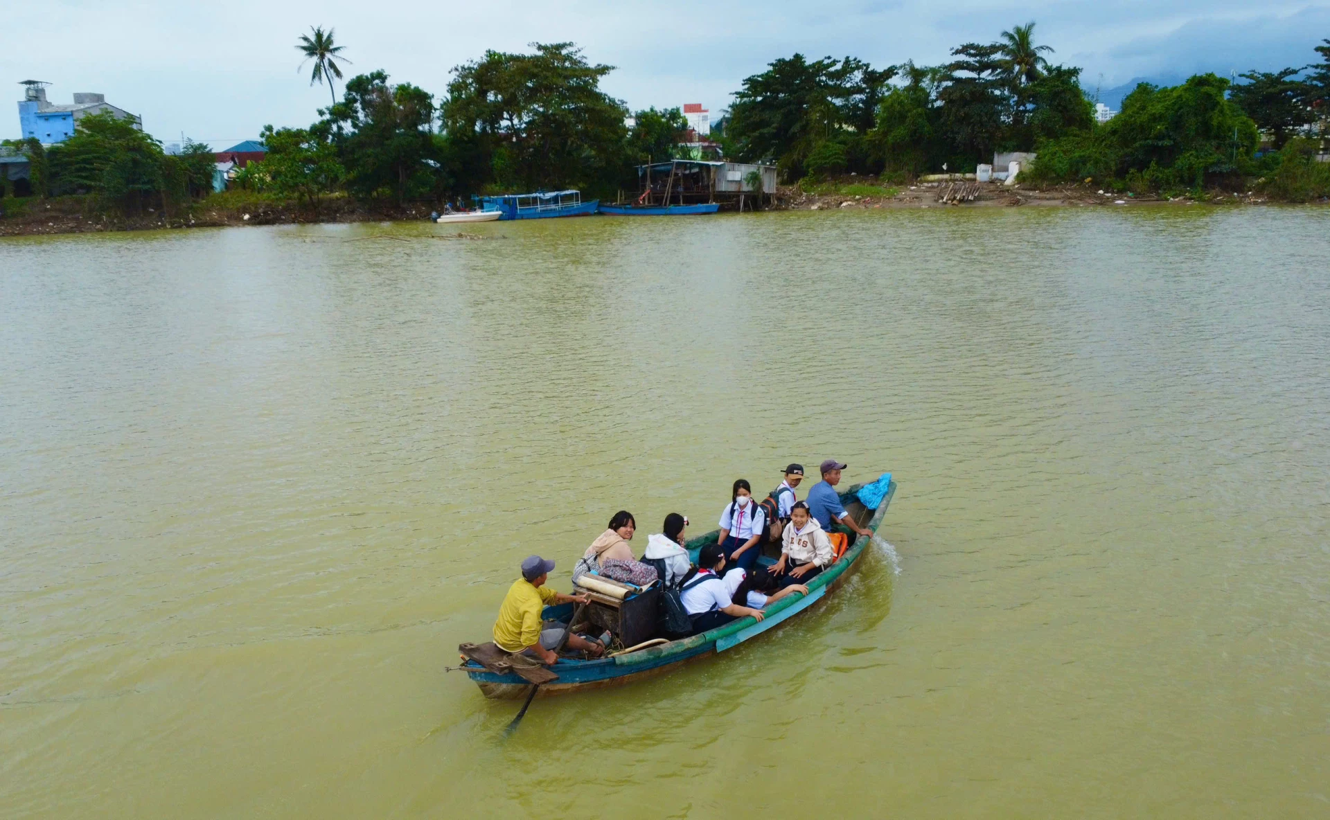 | Mỗi chuyến, ghe chở khoảng 5-10 học sinh. |