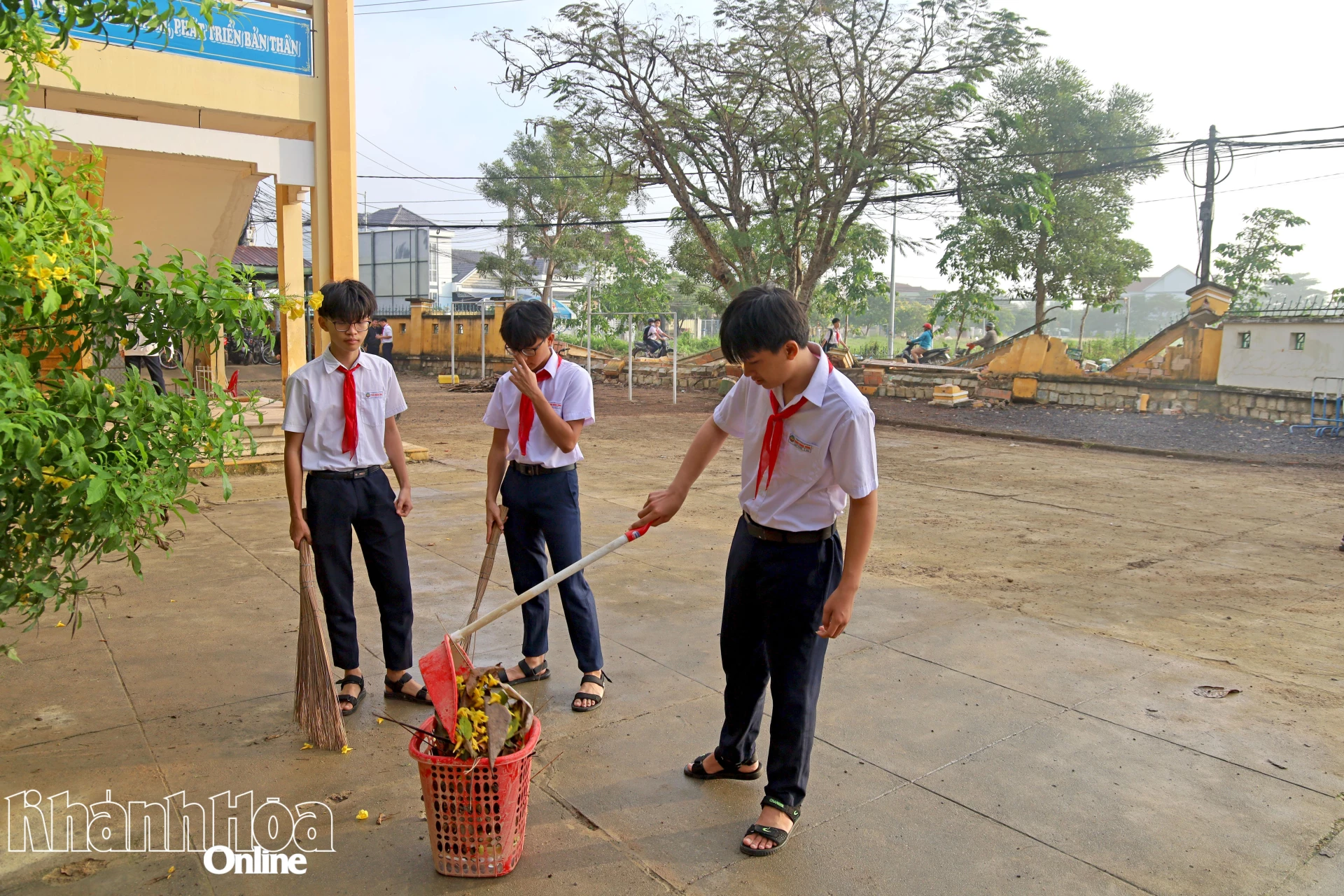 | Tham gia dọn dẹp vệ sinh sân trường. |