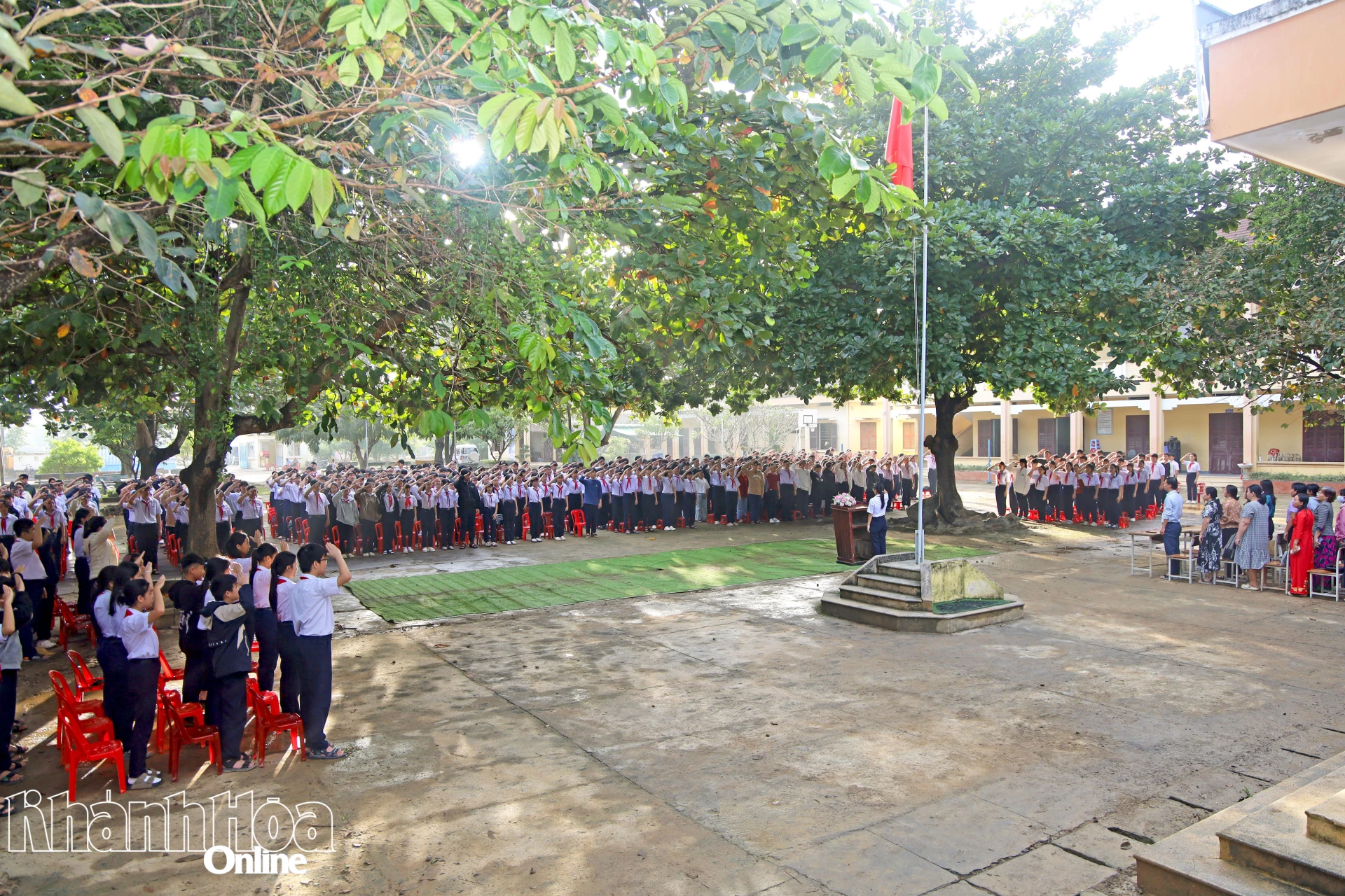 | Thầy và trò tham dự lễ chào cờ đầu tuần. |