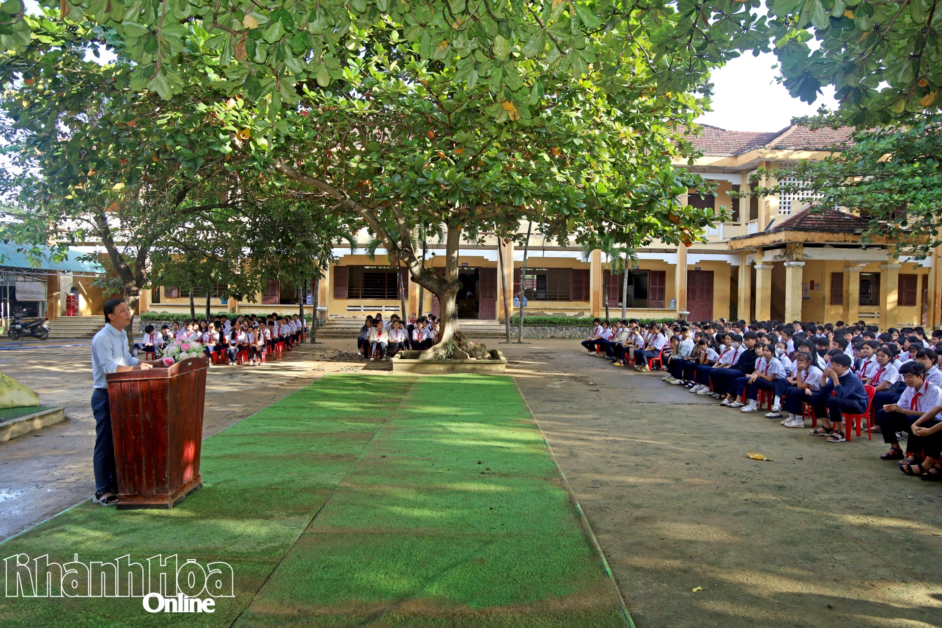 | Thầy hiệu trưởng thông tin, nhắc nhở học sinh một số vấn đề cần lưu ý. |