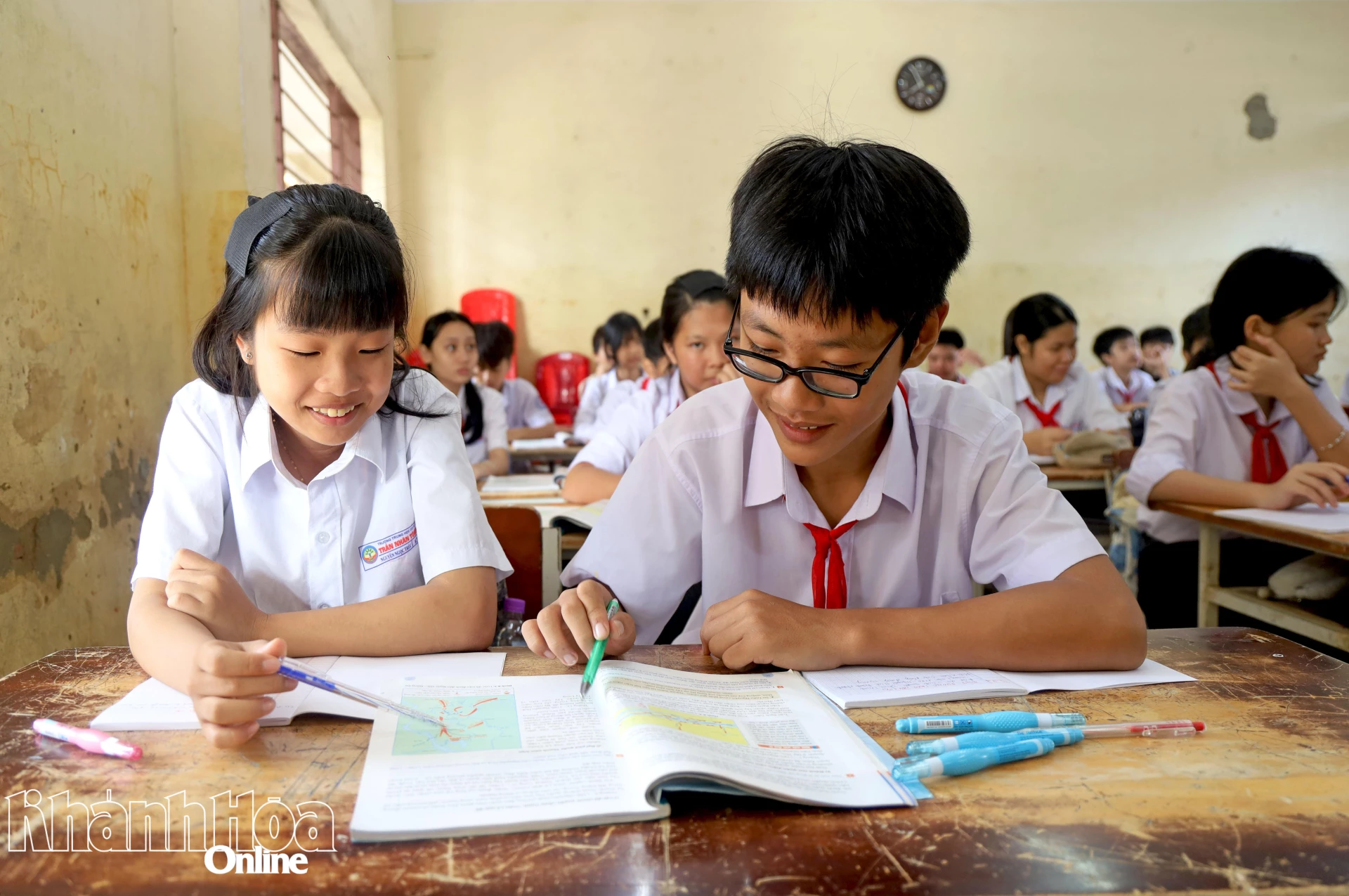 | Nhưng sách giáo khoa vẫn còn thiếu, nhiều em phải học chung sách với nhau. |