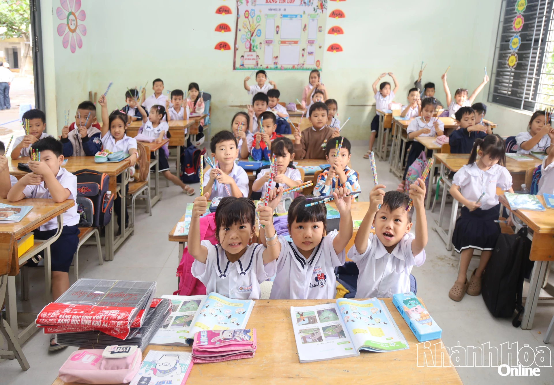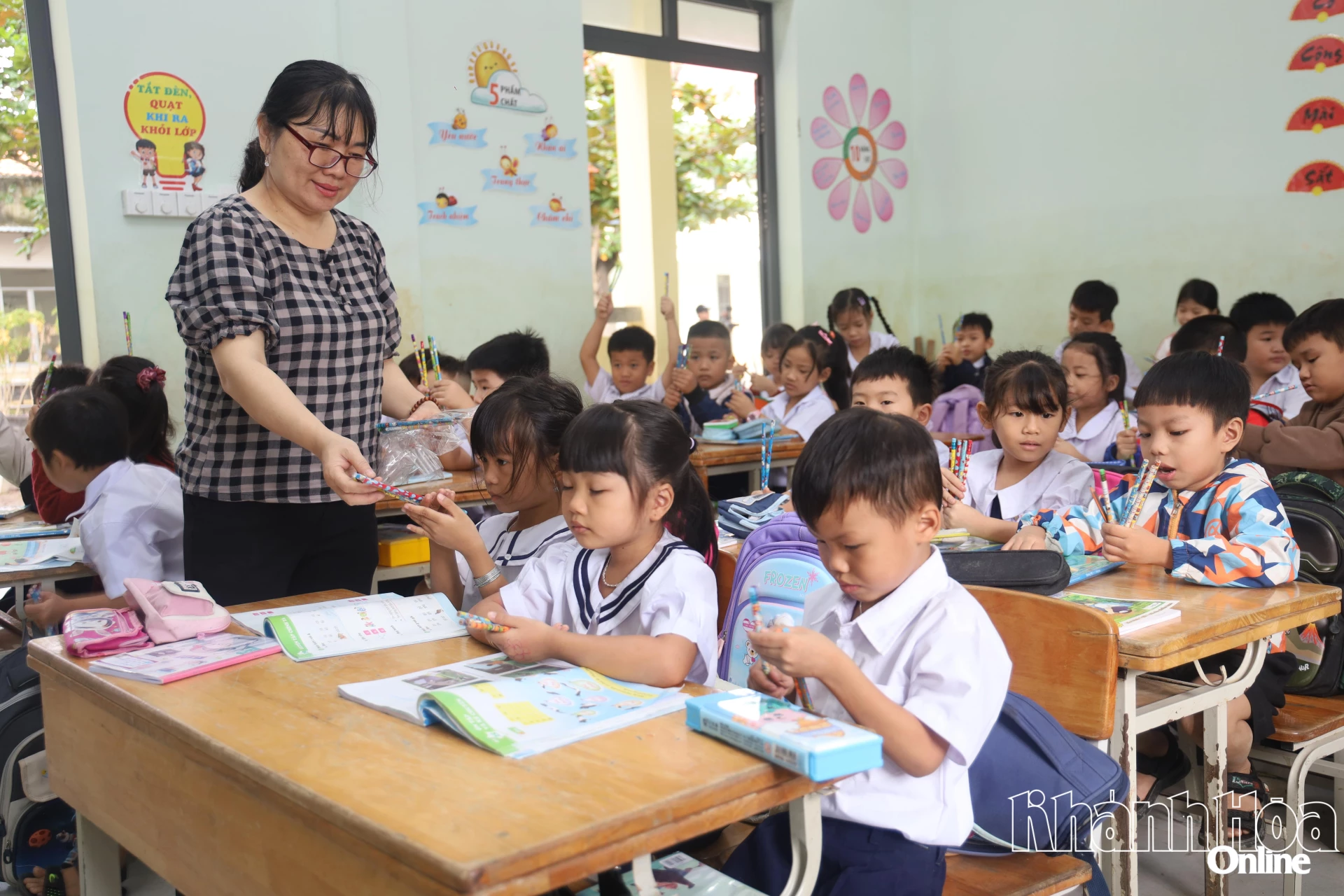 | Tại Trường Tiểu học Diên Sơn (xã Diên Điền), học sinh cũng được cô giáo phát bút. |