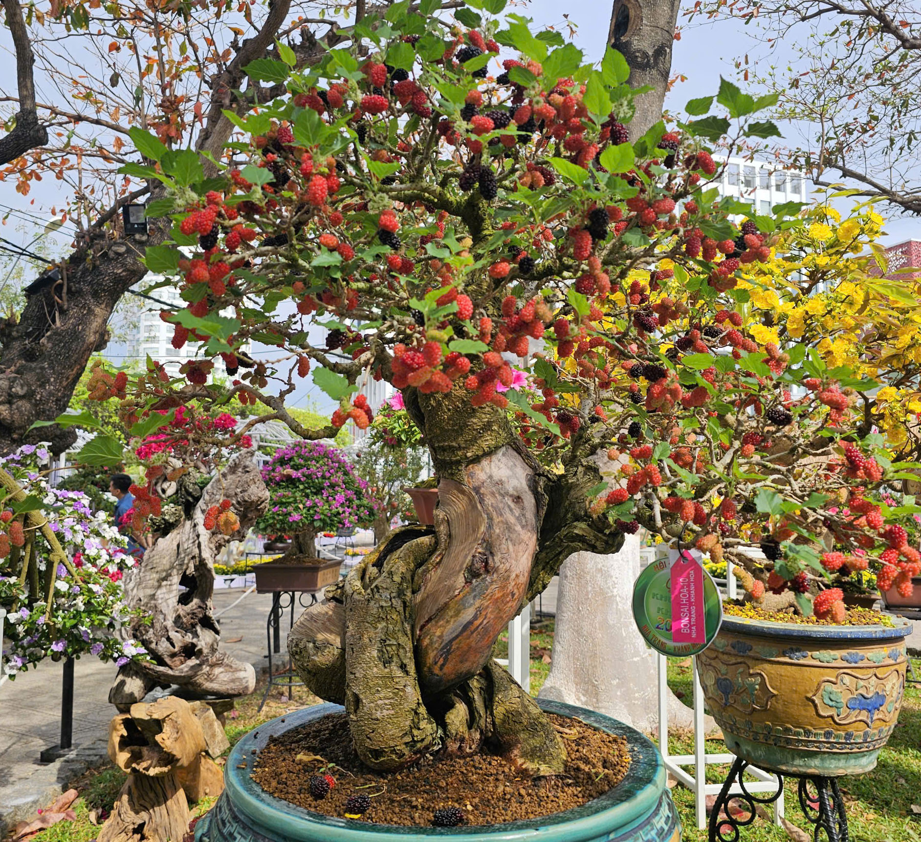 | Cây dâu chi chít trái khoe dáng rực rỡ cho mùa xuân may mắn, thịnh vượng. |