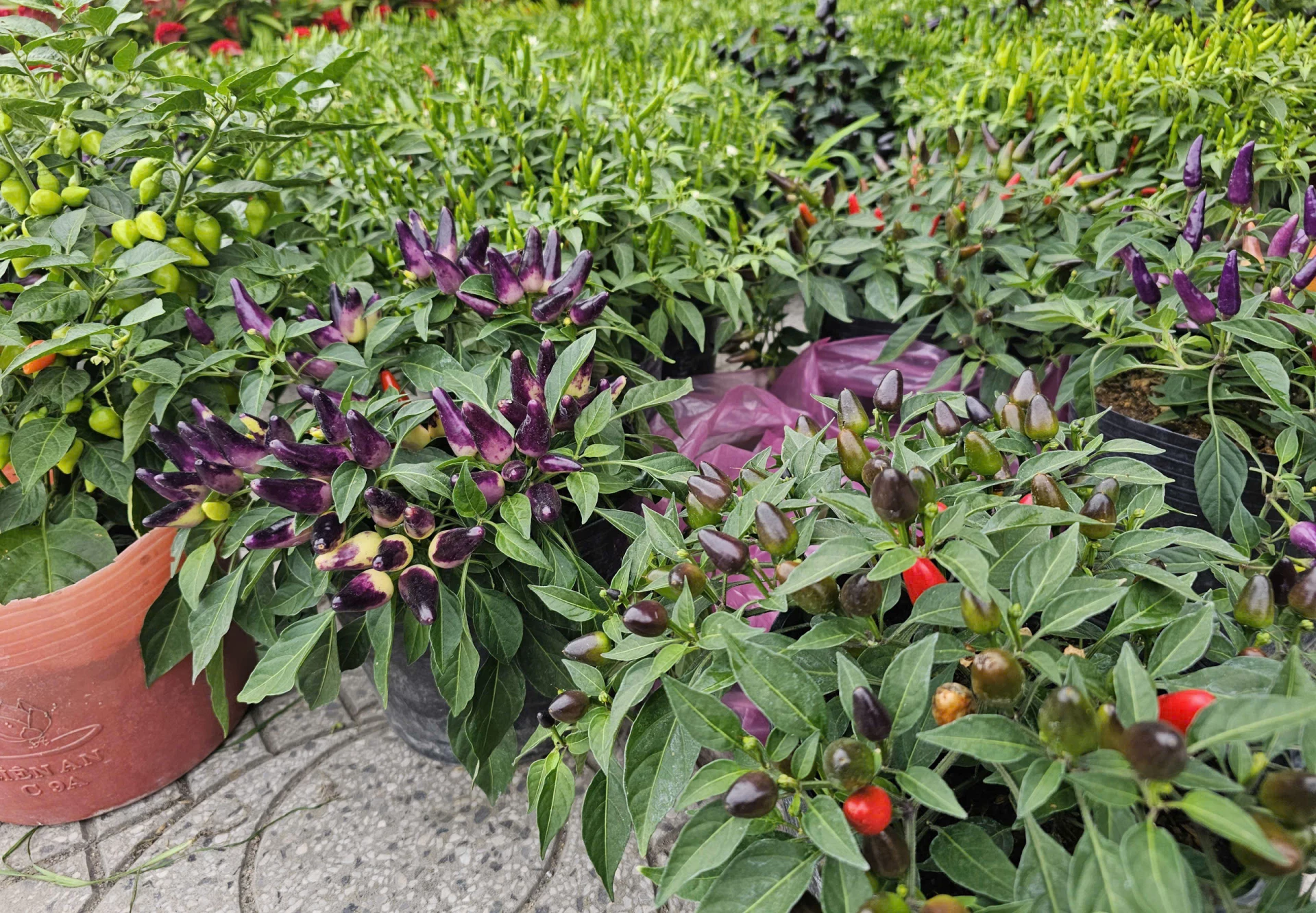 | Những chậu ớt sai quả, đủ sắc không chỉ làm đẹp cho không gian ngày xuân mà còn tượng trưng cho sự sung túc, ấm no. |