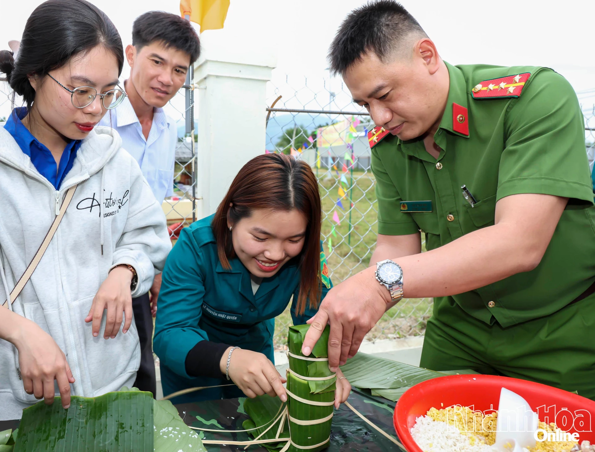| Các đội thi gói bánh chưng. |