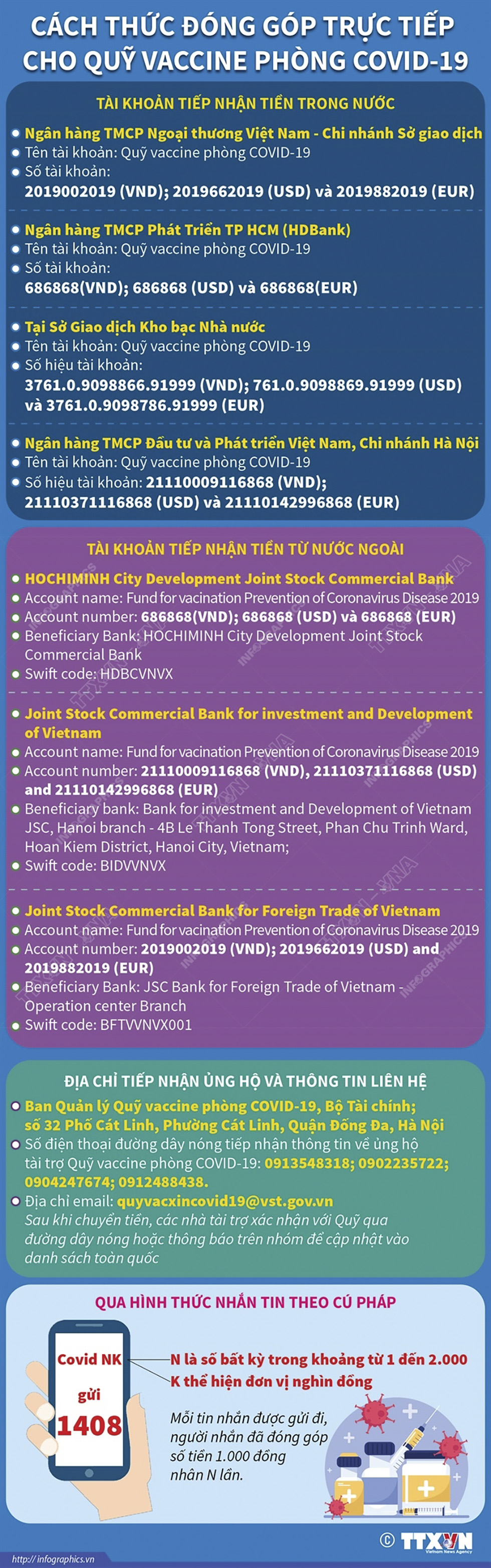 Quỹ vaccine phòng COVID-19 được thành lập với sứ mệnh huy động tổng hợp nguồn lực đóng góp xã hội để chia sẻ với ngân sách nhà nước nhằm phục vụ cho hoạt động mua, nhập khẩu vaccine, nghiên cứu, sản xuất vaccine trong nước sử dụng vaccine phòng COVID-19 cho người dân trên nguyên tắc đảm bảo sự tự nguyện đóng góp, hoạt động công khai, minh bạch và đúng quy định của pháp luật và thuận lợi nhất cho việc đóng góp.