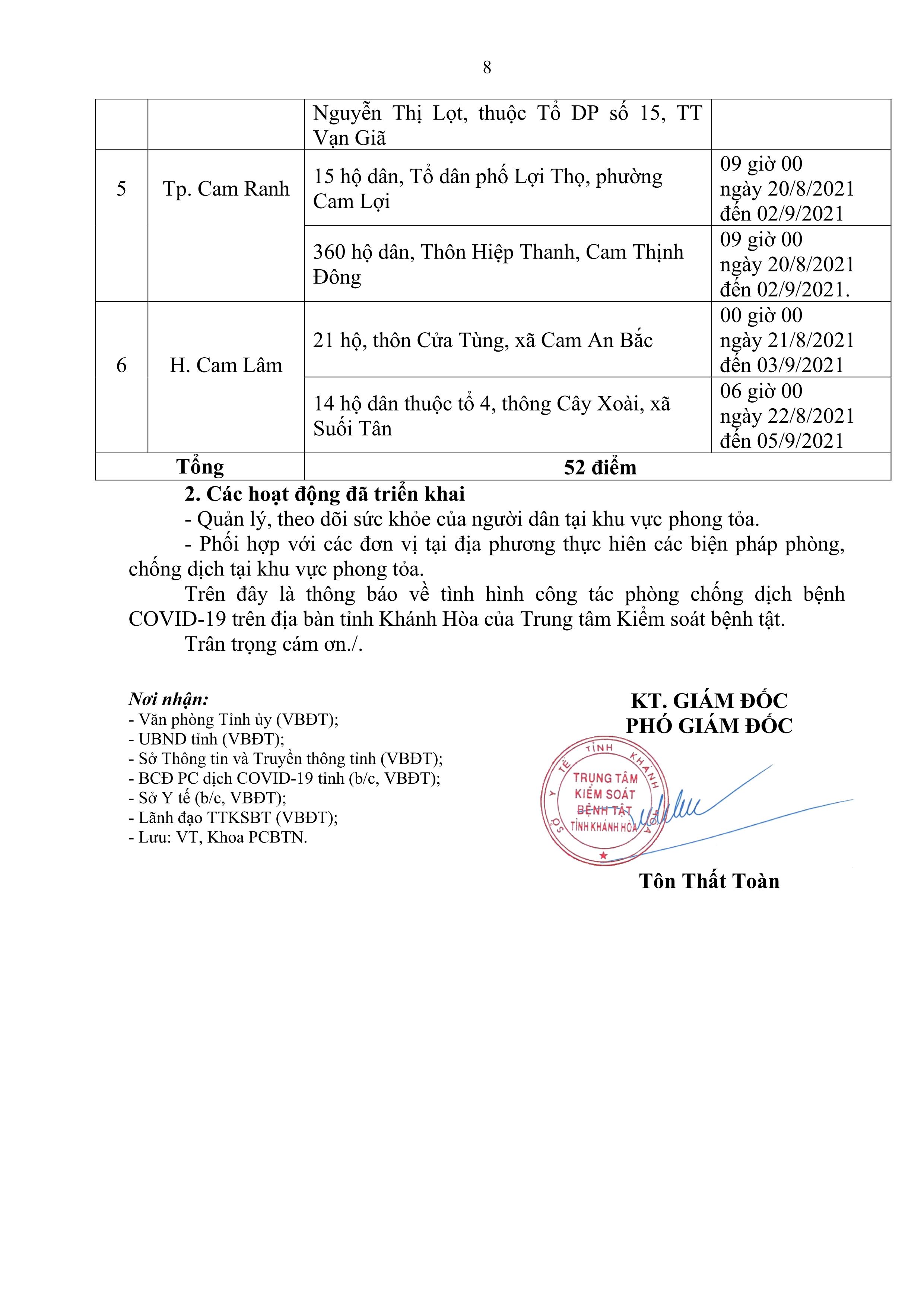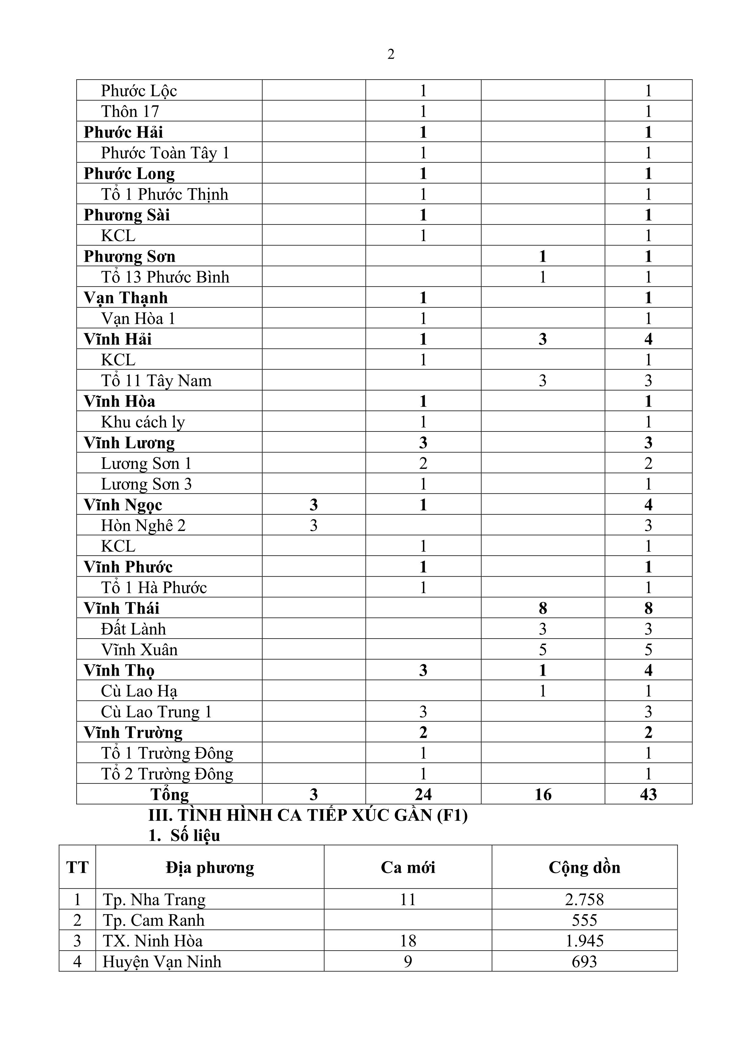 Sáng 2-9, theo Trung tâm Kiểm soát bệnh tật tỉnh Khánh Hòa, từ 17 giờ ngày 1-9 đến 7 giờ ngày 2-9, toàn tỉnh ghi nhận thêm 1 ca dương tính với SARS-CoV-2.