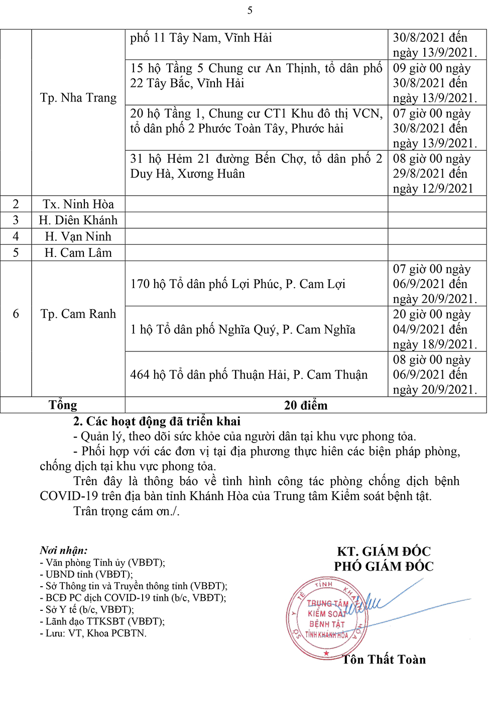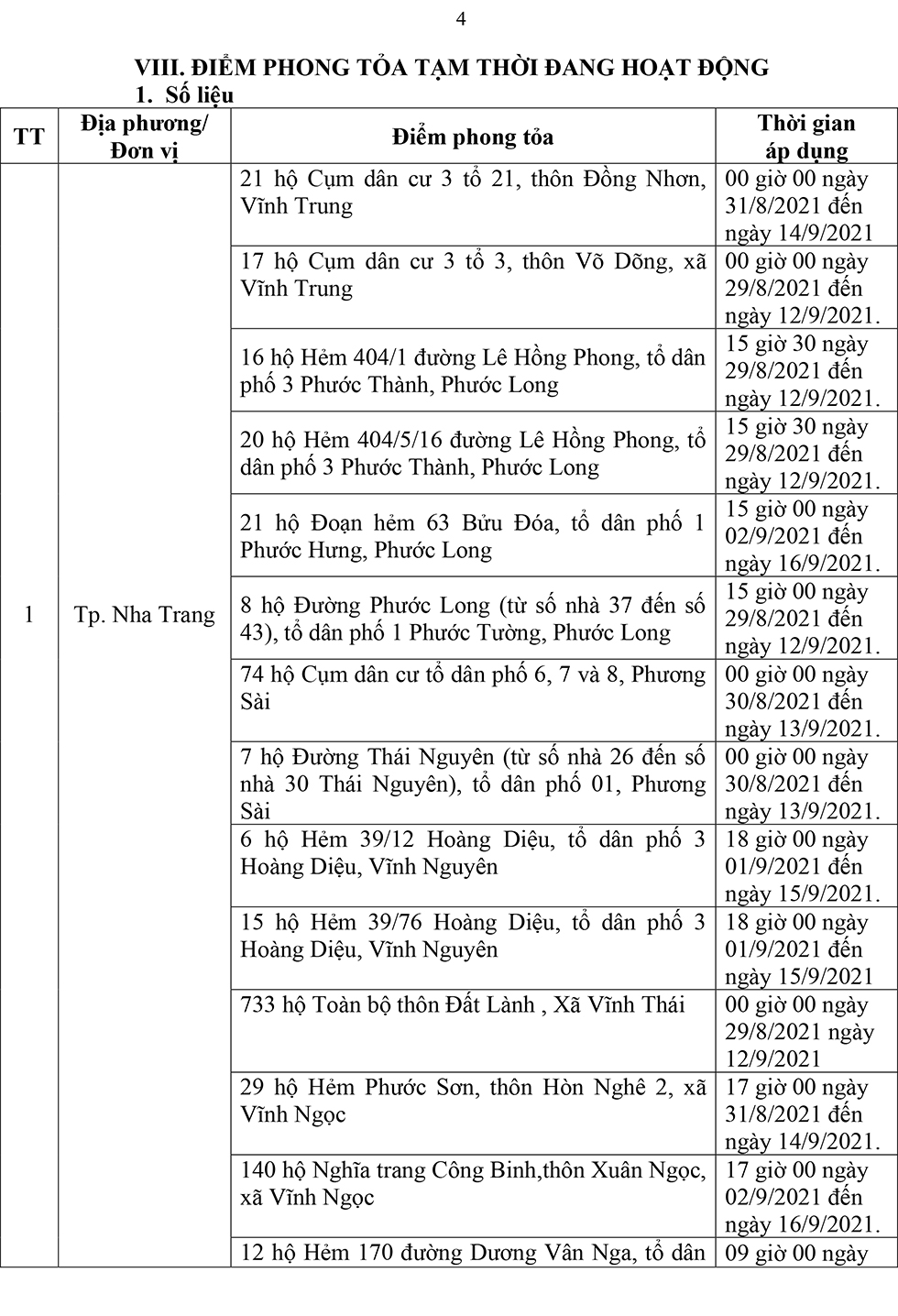 Sáng 12-9, theo Trung tâm Kiểm soát bệnh tật tỉnh Khánh Hòa, từ 17 giờ ngày 11-9 đến 7 giờ ngày 12-9, toàn tỉnh ghi nhận thêm 4 ca dương tính với SARS-CoV-2.