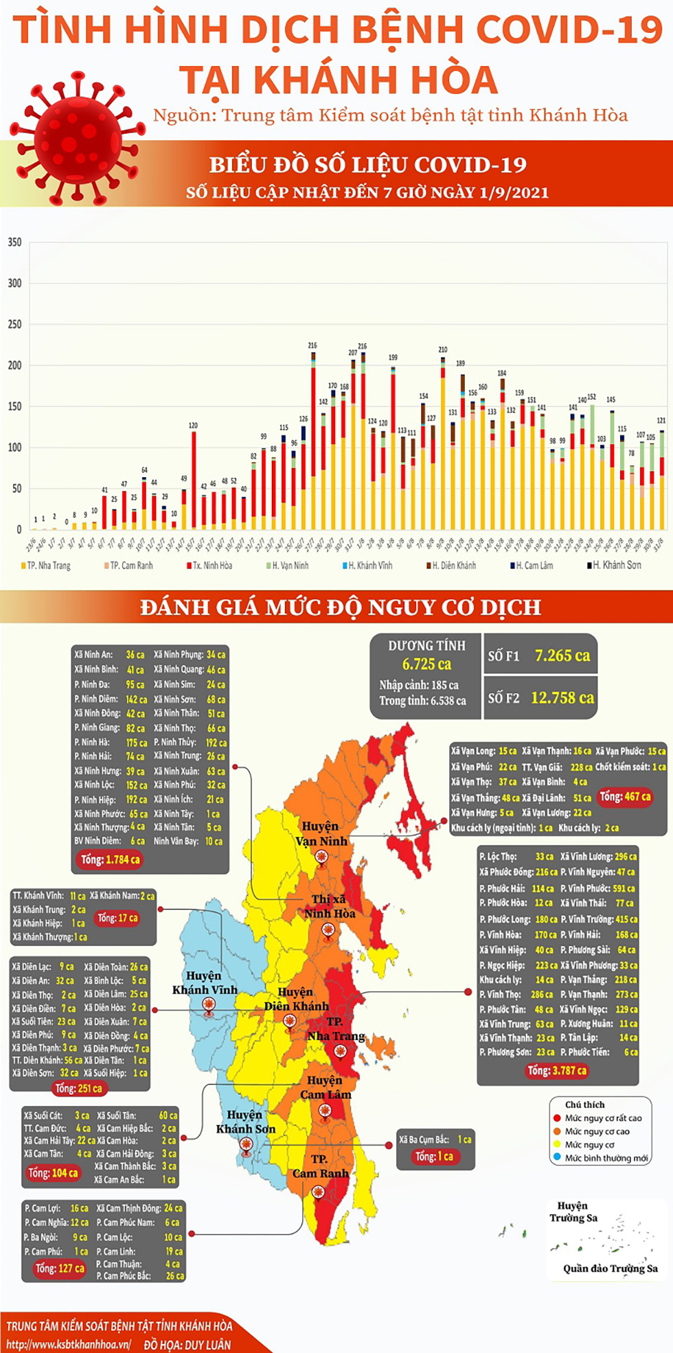 Tình hình dịch bệnh Covid-19 tại Khánh Hòa (cập nhật đến 7 giờ, ngày 1-9-2021)
