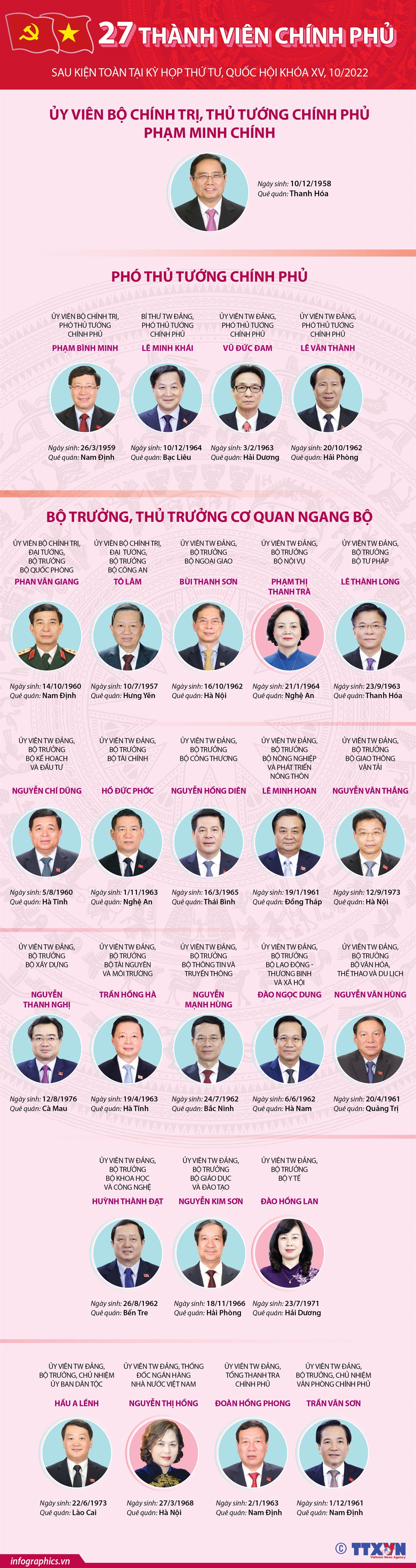 Chiều 21/10/2022, tại kỳ họp thứ tư, Quốc hội khóa XV, các đại biểu Quốc hội đã bỏ phiếu bầu bà Đào Hồng Lan giữ chức Bộ trưởng Bộ Y tế; ông Nguyễn Văn Thắng giữ chức Bộ trưởng Bộ Giao thông vận tải.