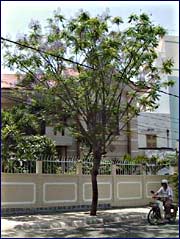 Đó là cây phượng tím trên vỉa hè trước nhà số 20 Tô Hiến Thành. Cây phượng xanh tươi và đang trổ đầy hoa tím.