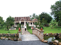 Trung tâm của khu nghỉ mát là một ngôi nhà theo kiến trúc Pháp cổ được xây dựng từ năm 1939. Trải qua 3 thế hệ, ngôi nhà vẫn được bảo quản và giữ nguyên bản cho đến nay. Được biết, đây là ngôi nhà của một thầy lang nổi tiếng trong vùng với những tủ thuốc, tấm phản ngồi bốc thuốc còn nguyên vẹn như xưa. Xuất phát từ ý tưởng giữ lại di sản của cha ông, muốn giữ lại hồn quê nên con cháu đã tôn tạo, xây dựng lại nơi đây thành khu nghỉ. Toàn bộ không gian được thiết kế để du khách có thể tận hưởng không khí trong lành của một miền quê hiền lành, yên ả. Chất thôn dã thể hiện rõ ở đây với sự xuất hiện 2 nếp nhà tranh vách đất và một bánh xe nước nằm giữa bãi cỏ xanh biếc bên khu vườn râm mát.