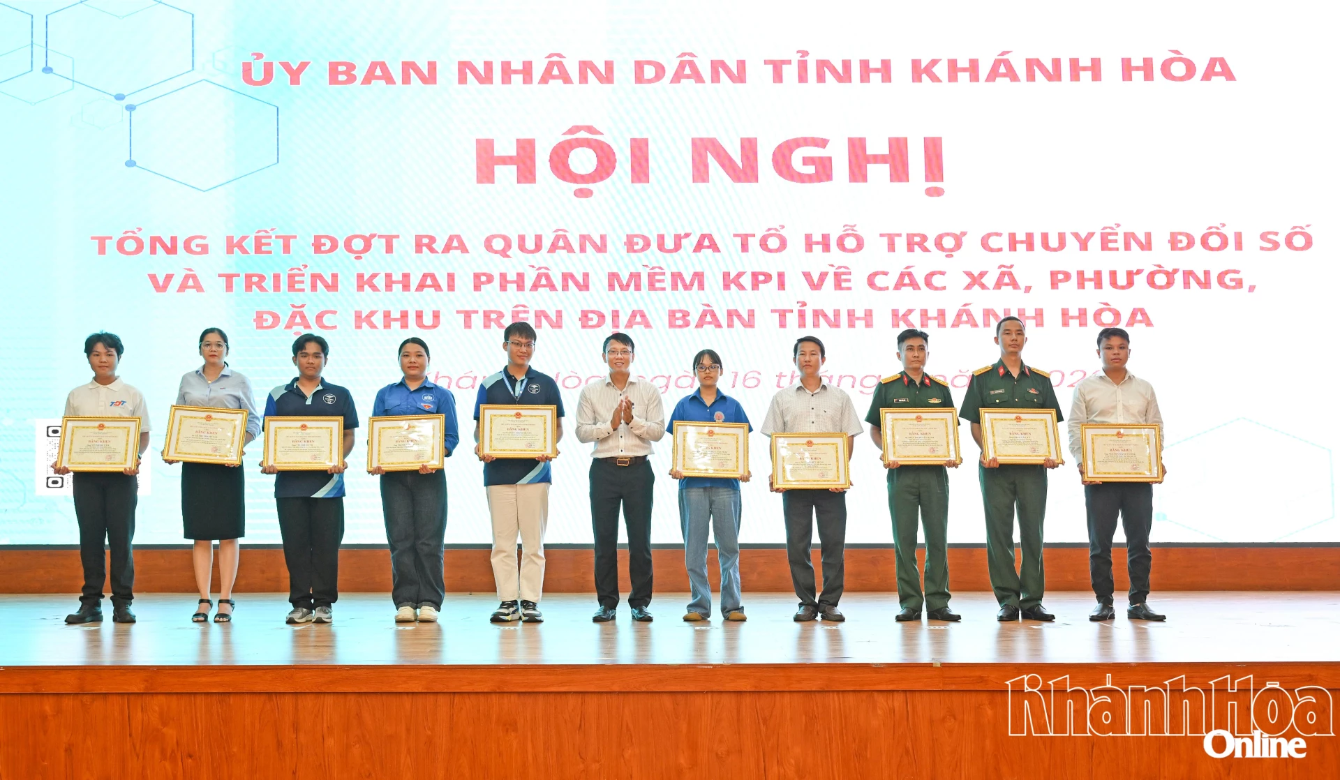 Sau khi hợp nhất 2 tỉnh Khánh Hòa - Ninh Thuận, nắm bắt một số xã, phường còn khó khăn về nhân lực CNTT, kỹ năng vận hành các phần mềm dùng chung, Ban Thường vụ Tỉnh ủy đã thống nhất chủ trương huy động nguồn nhân lực về CNTT từ các trường đại học, cao đẳng, học viện trên địa bàn tỉnh để hỗ trợ toàn bộ 65 xã, phường, đặc khu. Ngày 30-10-2025, UBND tỉnh đã tổ chức lễ phát động đợt ra quân cao điểm đưa Tổ hỗ trợ chuyển đổi số và triển khai phần mềm KPI về các xã, phường, đặc khu trên địa bàn tỉnh. Đợt cao điểm được triển khai trong bối cảnh Khánh Hòa đang quyết liệt thực hiện các chủ trương lớn của Trung ương, đặc biệt là Nghị quyết số 57, ngày 22-12-2024 của Bộ Chính trị về đột phá phát triển khoa học, công nghệ (KH-CN), đổi mới sáng tạo và chuyển đổi số quốc gia. 162 giảng viên, sinh viên của 8 trường đại học, cao đẳng, học viện đã trực tiếp xuống cấp xã hỗ trợ vận hành phần mềm KPI, quản lý văn bản E-Office, dịch vụ công trực tuyến, thực hiện chữ ký số và hướng dẫn kỹ năng số cho cán bộ, công chức, viên chức (CB-CC-VC) cấp xã.