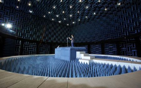 Tuy vậy, bên trong căn phòng thí nghiệm này cũng giống với các phòng kín khác của các hãng khác trong Thung lũng Silicon. Điểm ấn tượng nhất của căn phòng 100 triệu USD này là cấu trúc hình hộp không gây ra tiếng vọng để các kỹ sư kiểm da cường độ âm thanh và độ nhiễu từ.