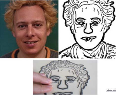 Thay vào đó, nhóm nghiên cứu sử dụng một thuật toán cắt tỉa thông tin quan trọng trên khuôn mặt mà không quá đơn giản hóa nó. Phần mềm của họ cho phép người sử dụng bị mù có thể chụp một khuôn mặt, đưa ảnh vào phần mềm ứng dụng máy tính và tự động tạo ra một hình ảnh in được mới. Hình ảnh này được máy in đặc biệt cho người khiếm thị in ra với các đường nét nổi theo những đặc điểm khuôn mặt.