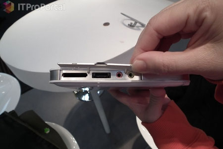 | Chiếc máy tính chỉ lớn hơn 1 chút so với vỏ đựng CD. |